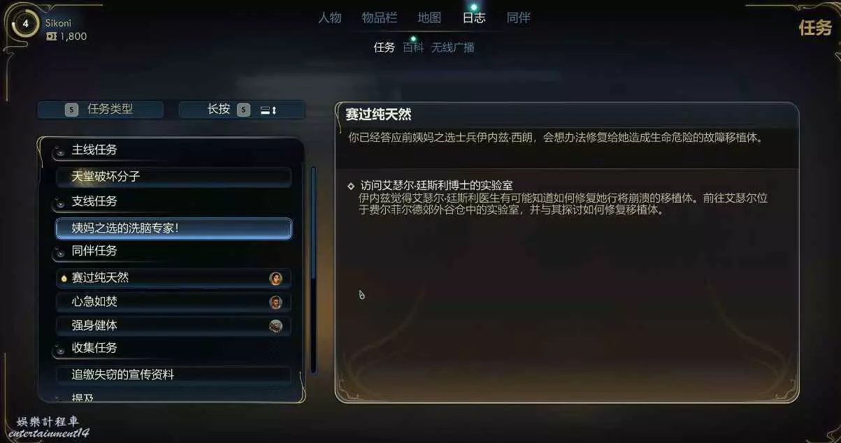 現在的任務日誌提示應該是讓我們去找移植體醫生了
