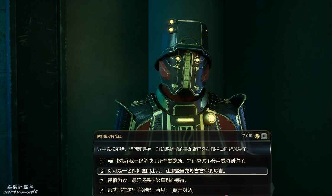 如果我們口才夠高,就能解鎖以下第二個對話,不過一般玩家可能都把技能點留給駭客或者偷竊了,所以這裡我們選第一個