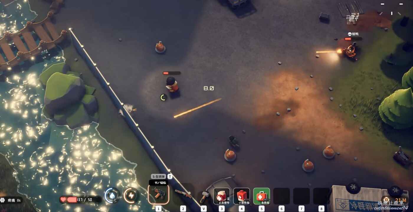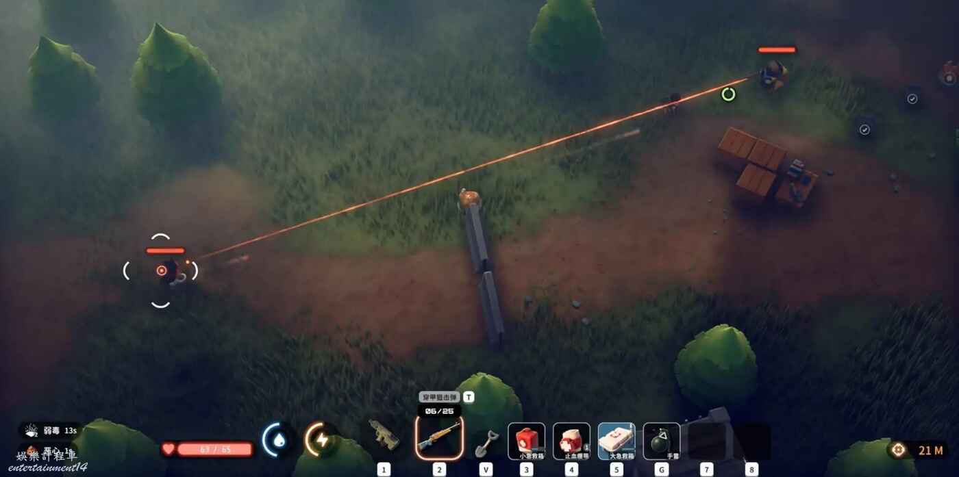 此外,記得善用投擲物,這個遊戲的ai會躲手雷但不會躲毒和火,可以一個火+勾引燒死整個團。