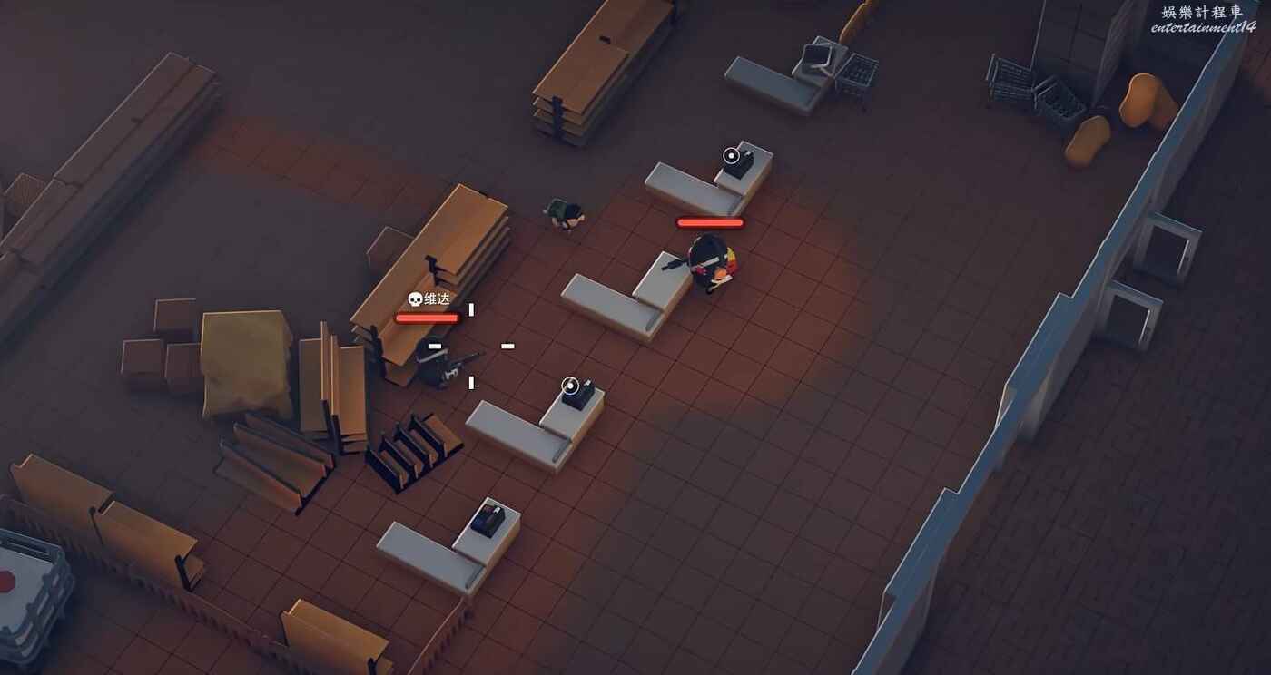 最後,你知道的,超市的門都比較小,很適合下一個陷阱夾子。先不提ai有時候會自己卡門,如果沒卡門踩了夾子,找一個他打不到的角度扔過去兩顆雷就行了。如果不會用夾子,直接利用超市複雜地形上一顆閃暈住然後塞雷也是個簡單的辦法。