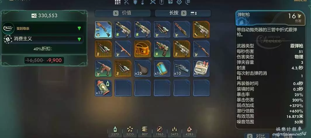 天外世界 2 彈射槍特殊武器獲取方式 29 10 月 2025-10-29 廣告 來源:互聯網 在遊戲內有一個可以射出廣告牌子嘲諷敵人的特殊武器“彈射槍” 需要玩家將主線推進到姨媽之選絕對掌控號的時候,就可以在商業街武器商頁面裡購買。 武器介紹 彈夾容量:3 射速:4.3/秒 弱點加成:+370% 潛行倍數:+650% 升級模組:霞彈槍式行銷 發射侵略性廣告無人機以佔領目標市場,激消費者。 廣告無人機損毀時自動重載,但手動重載會引發廣告突發關閉。 雖然子彈上限不多,但是很好用。