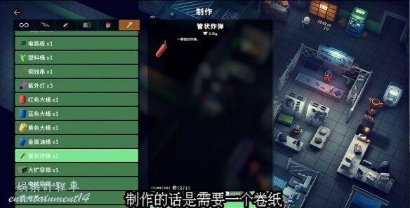造管束炸彈需卷紙和火藥,火藥可分解子彈獲得,需在工作台升級分解功能。