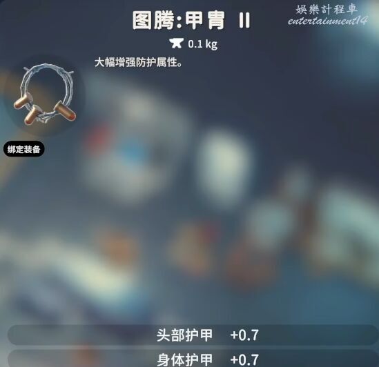 生命圖騰的好搭檔,樸實無華的加防。跟生命圖騰輪換可以做到在跑圖時最大程度防暴死。特別是狂暴難度下建議有就先穿著。注意3級甲胄會導致屬性傷害提高,因此在打屬性boss時不如2級甲胄。建議一樣留一個。