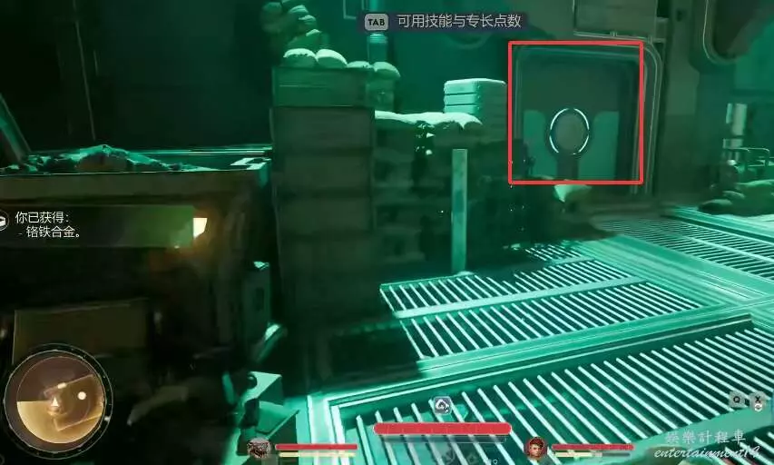 順著路走,開門繼續往前走到下圖所示位置,開門進去。