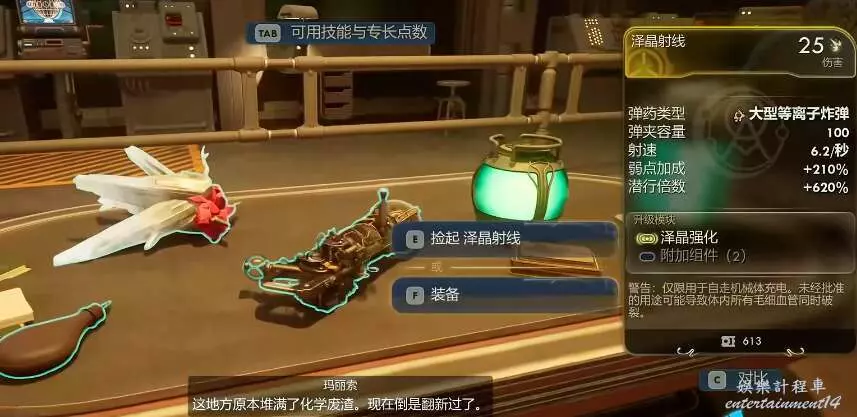 開門進去,就在桌上就能拾取到武器澤晶射線。