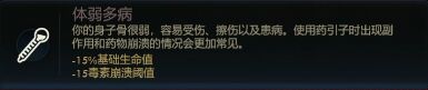 體弱多病:你的身子骨很弱,容易受傷、擦傷以及患病。使用藥引子時出現副作用和藥物崩潰的情況會更加常見。