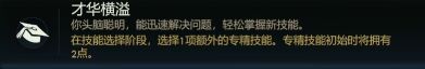在技能選擇階段,選擇1項額外的專精技能。專精技能初始時將擁有2點。