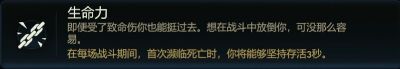 生命力:即便受了致命傷你也能挺過去。想在戰鬥中放倒你,可沒那麼容易。