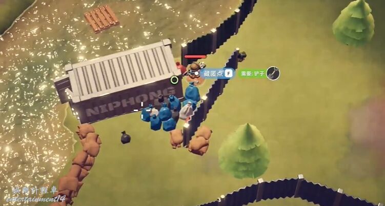 玩家前往臨時工地左側下圖所示區域,過來後靠近藏匿點,直接使用道具鏟子即可。