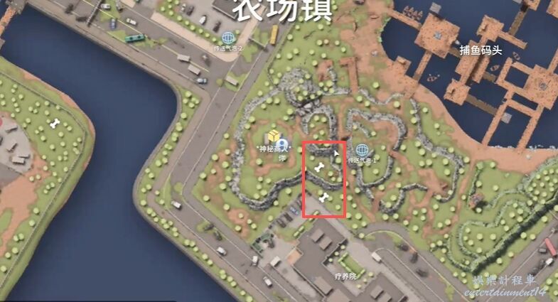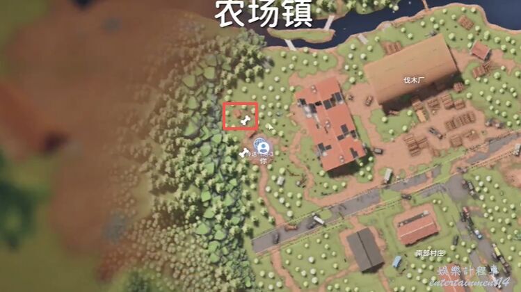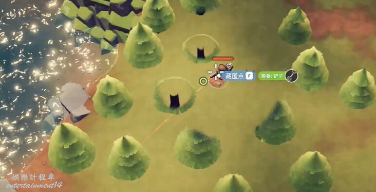 玩家前往南部村莊左側下圖所示區域,過來後靠近藏匿點,直接使用道具鏟子即可。