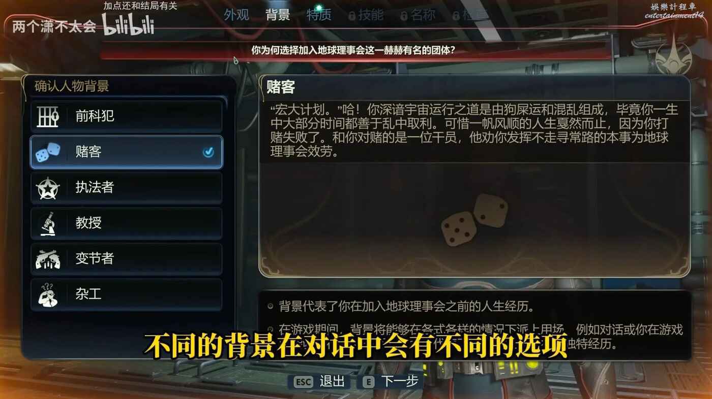 不同的背景在對話中會有不同的選項,有些事件光背景就能解決,比如教授能看懂複雜的科學公式,不過區別不大,按照你喜歡的選就行,要注意的是打雜背景,這個對話比弱智的還要好玩,想體驗樂子人生的可以優先選擇。