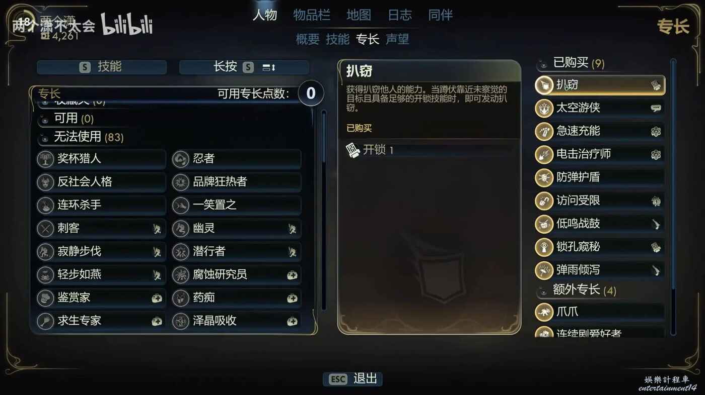 首推扒竊,可以讓你拿到NPC身上的東西,有名有姓的身上多半都有好東西,或者直接給你電腦、箱子的秘鑰讓你不用滿足技能就能開啟。
