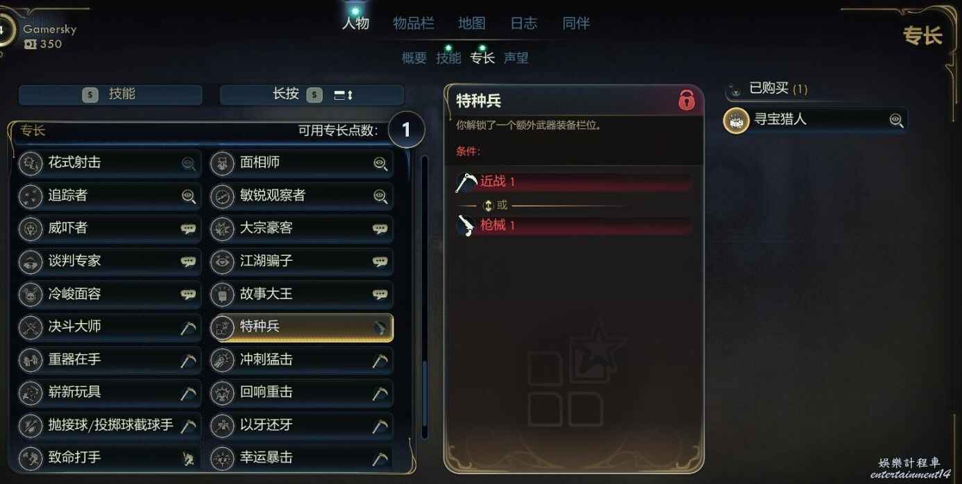 近戰或槍械技能達到1點即可解鎖,永久開啟額外武器欄位,無使用條件限制。