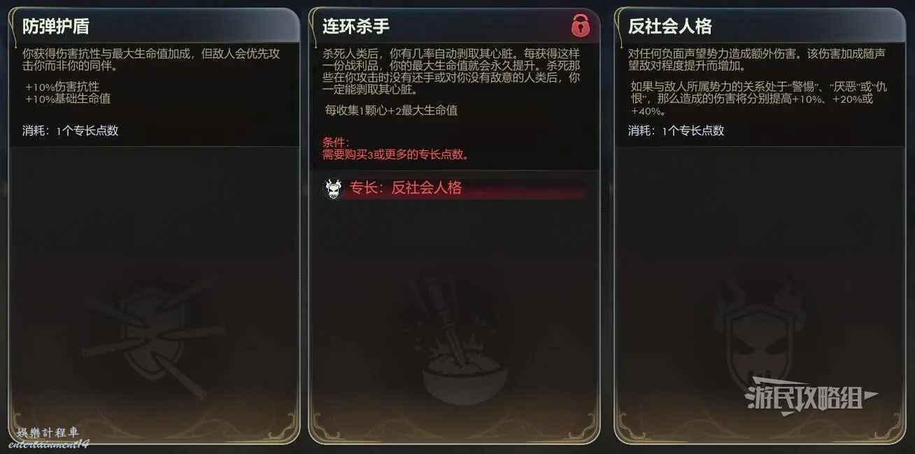 需要注意的是,解鎖【連環殺手】需要先解鎖【反社會人格】。