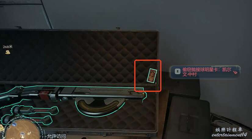 進入屋子直行,在槍械箱子上獲得“偷竊拋接球明星卡:凱爾文中村”