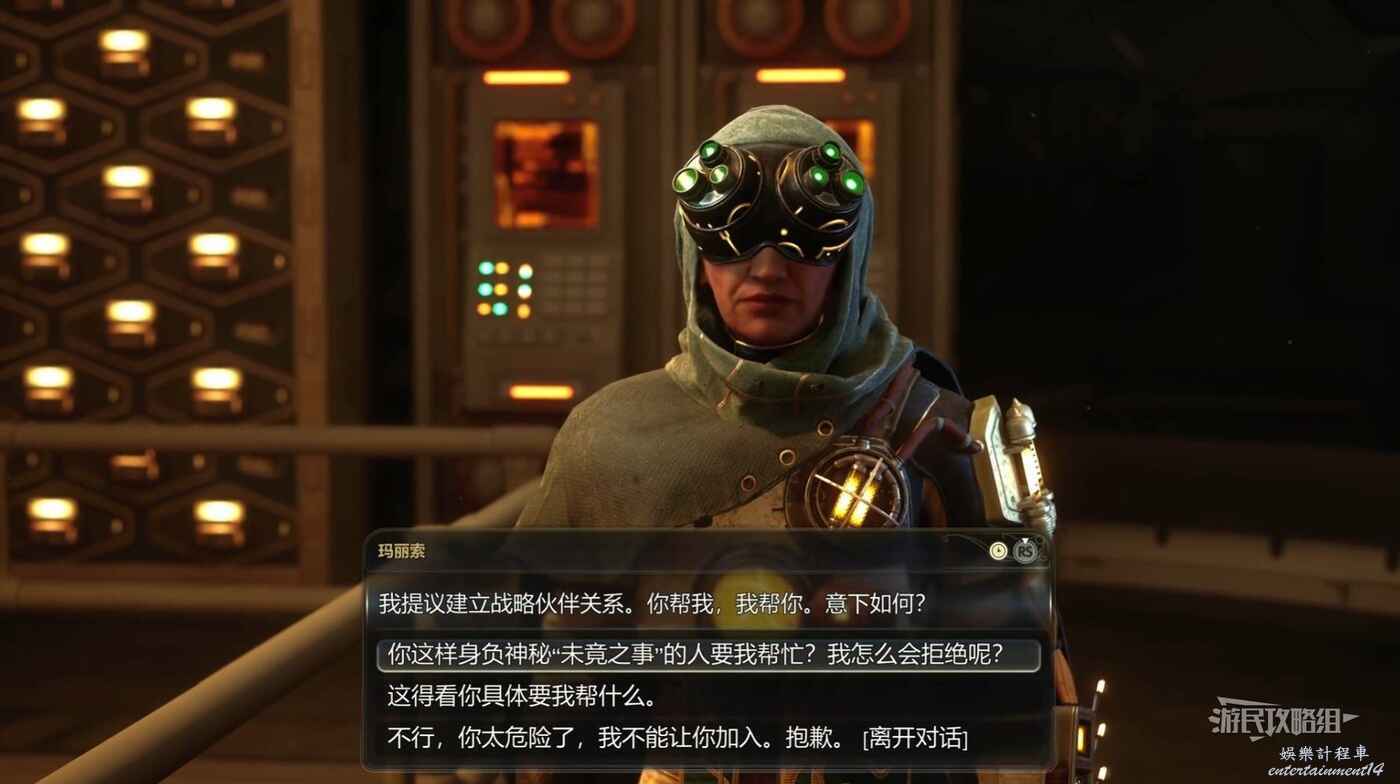 解鎖方法:招募瑪麗索需推進金脊嶺主線任務到修道院長老要求調查附近的澤晶製造廠,觸發任務【終焉者之始】。前往難民營地和修道院北部的標記地點【澤晶製造廠七號】,注意在任務期間,需要說服教團與阿爾瓦對話,同時通過選擇表示【信任對方】的對話選項,完成製造廠中她佈置的任務,最終揭露真相。之後聯手完成復仇後,瑪麗索即可加入隊伍。