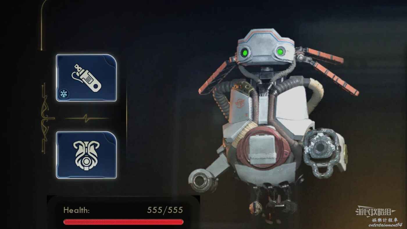 特質效果:當隊伍成員生命值過低時自動進行治療,在隊伍中時有機會在你侵入各樣機器時保留旁路分流器。