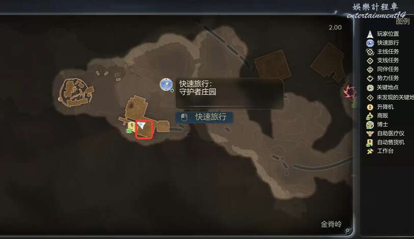 前往金脊嶺如圖所示位置。