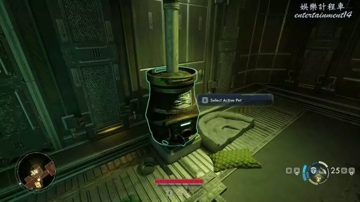 寵物可以通過你飛船內的寵物艙帶出來。它看起來有點像桶,可以在工作台前面找到。與寵物艙互動可以讓你從已解鎖的寵物中選擇一個啟動。你一次只能啟動一隻寵物。