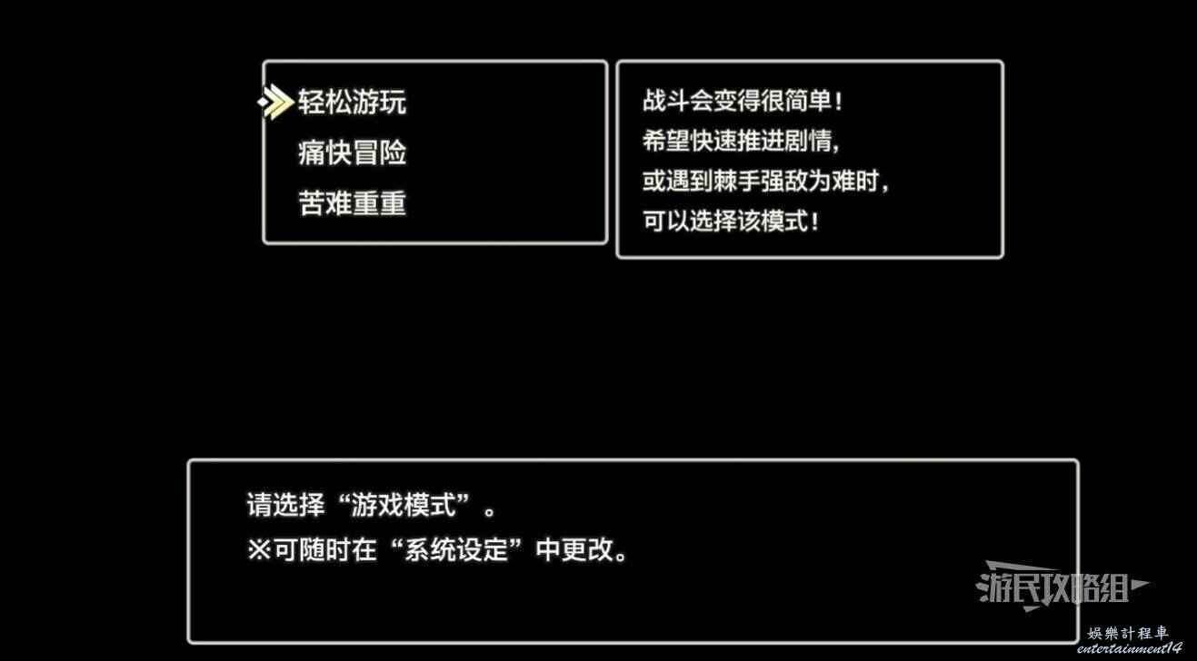 提供【輕鬆遊玩】、【痛快冒險】和【苦難重重】三種難度選項。玩家可根據自身喜好,自由選擇側重劇情體驗的簡單難度到富有挑戰性的困難難度。