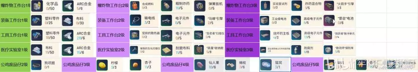 2級:破裂的生化掃描器x2、耐磨布料x5、“跳蚤”收納倉x8