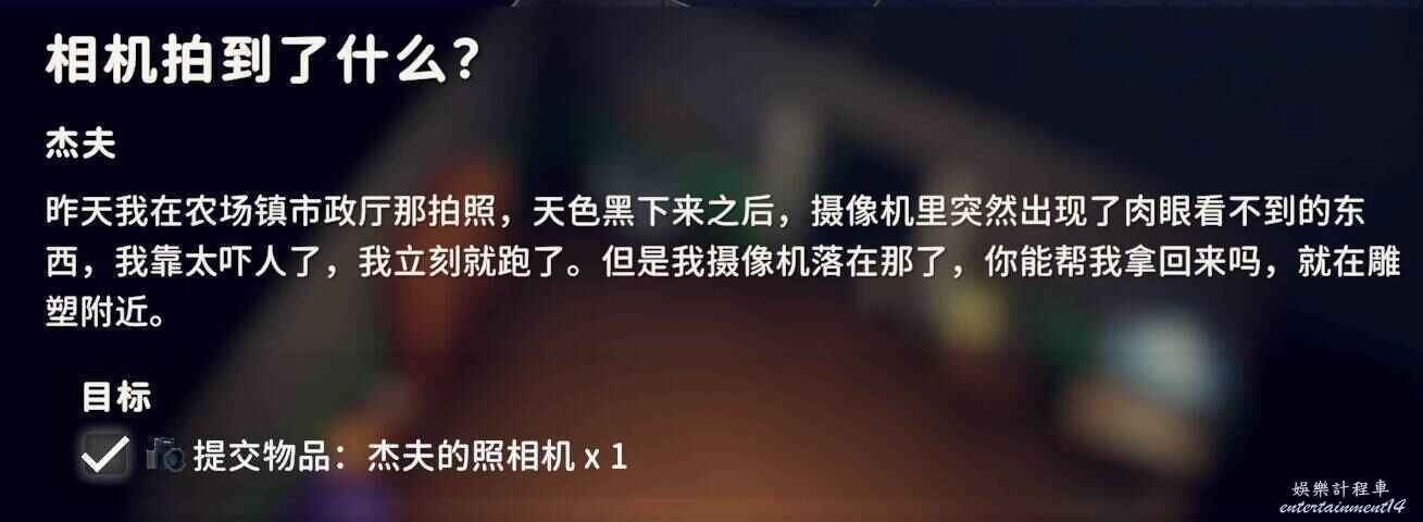 逃離鴨科夫 (Escape from Duckov) 相機拍到了什麼任務攻略 1 11 月 2025-11-01 廣告 作者:LiuNian流年i 來源:bilibili 相機拍到了什麼(包含解密劇透) 任務位置在農場鎮市政廳門前,23:30-24:00最佳。 那麼通過任務描述我們知道“傑夫”大晚上來這拍照,事出反常必有妖,於是我們打開拍照模式會發現: 市政廳廣場這裡有數字,這個對應的就是X、O房間附近未知來電任務兩處電話亭的解密密碼(從左向右看:42451)。