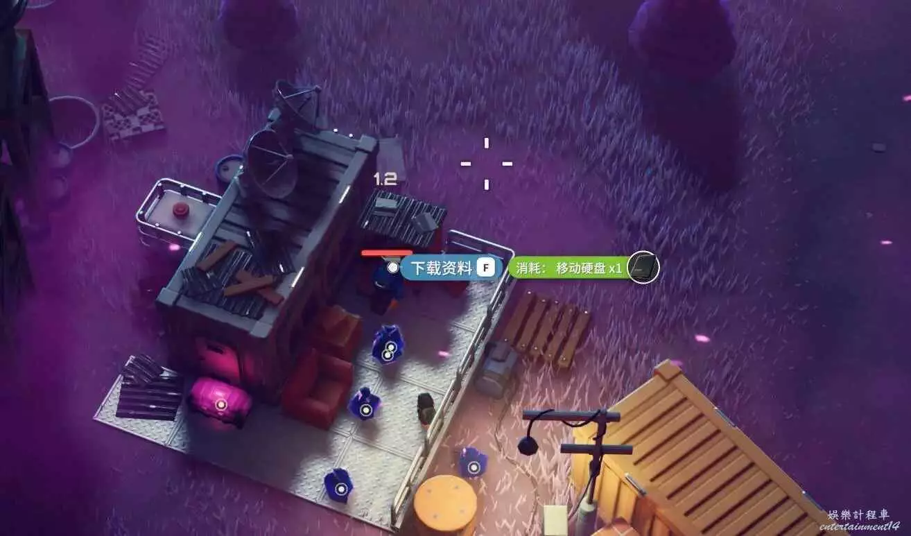 2.是否拾取下圖角色所在位置的資料物品(需要移動硬碟),並完成神秘的圖紙、拓展飛船空間、安裝空間拓展器三個任務(隱藏任務,需要拾取神秘圖紙後回到地堡小明哪裡才會出現感嘆號接任務)。
