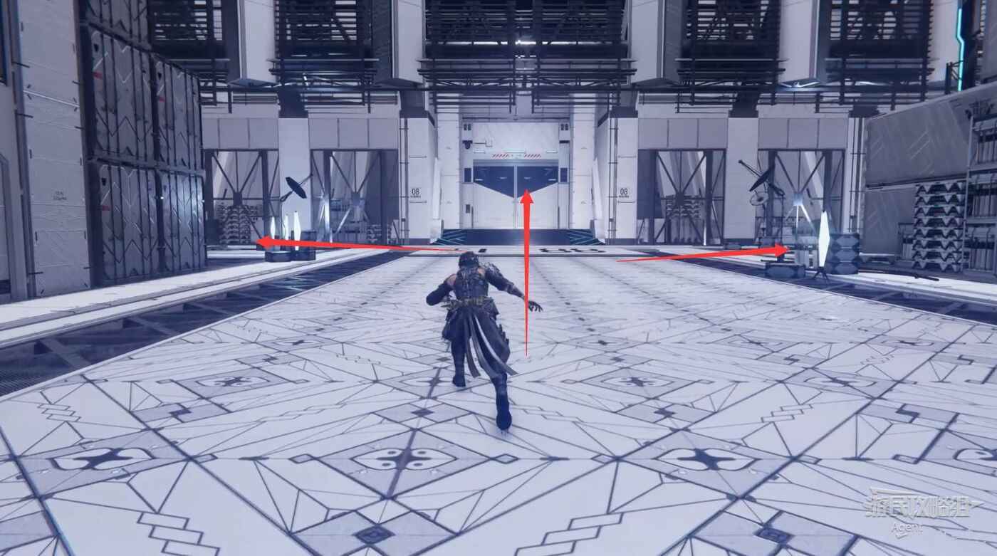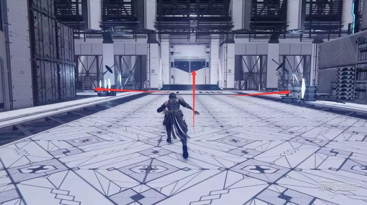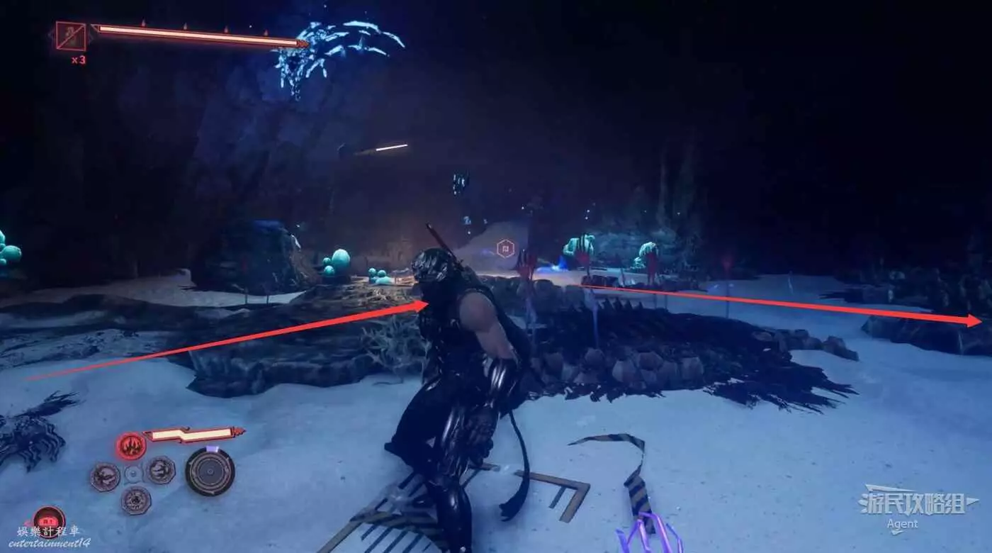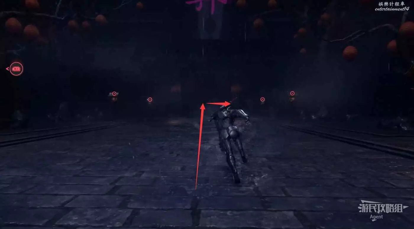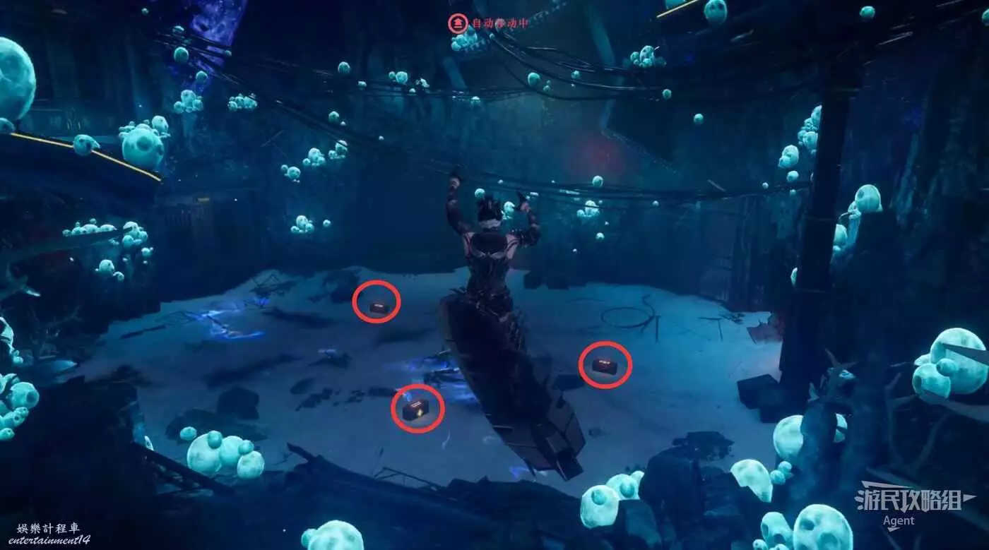 沿發光痕跡經過前方的縫隙後,先往左走。我們從左至右按順時針探索一圈。