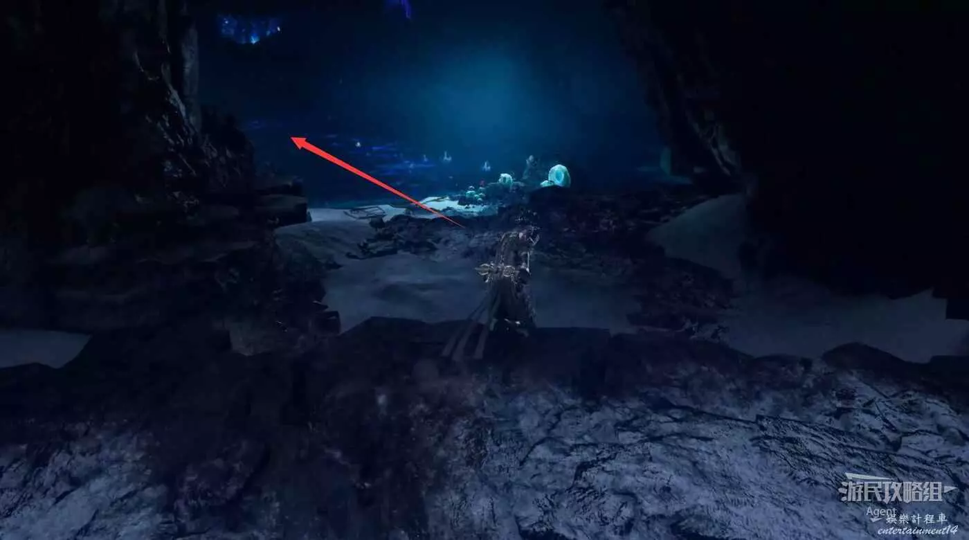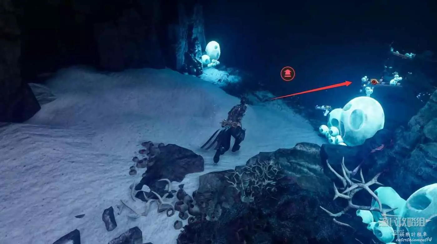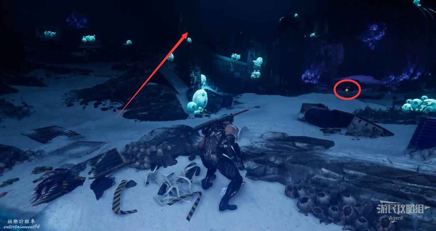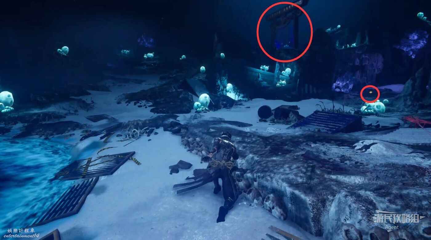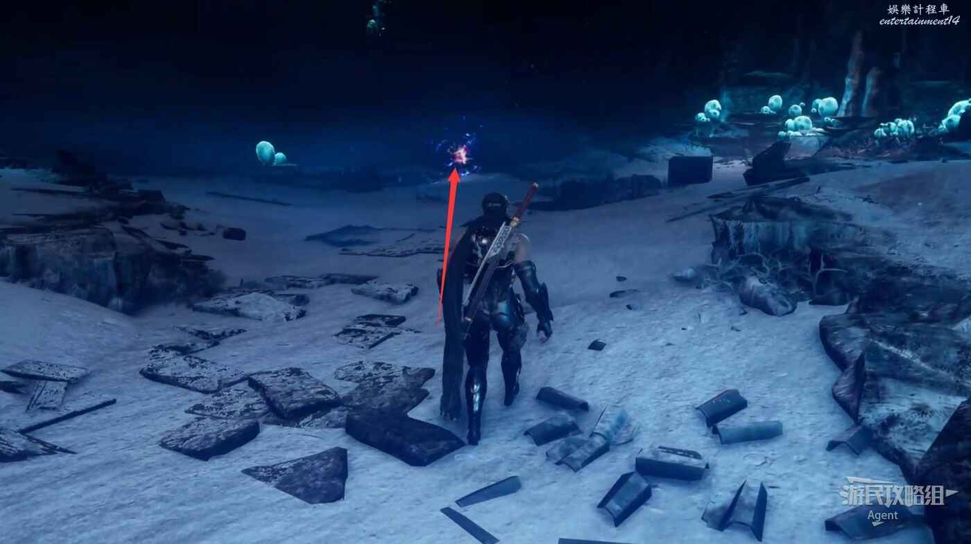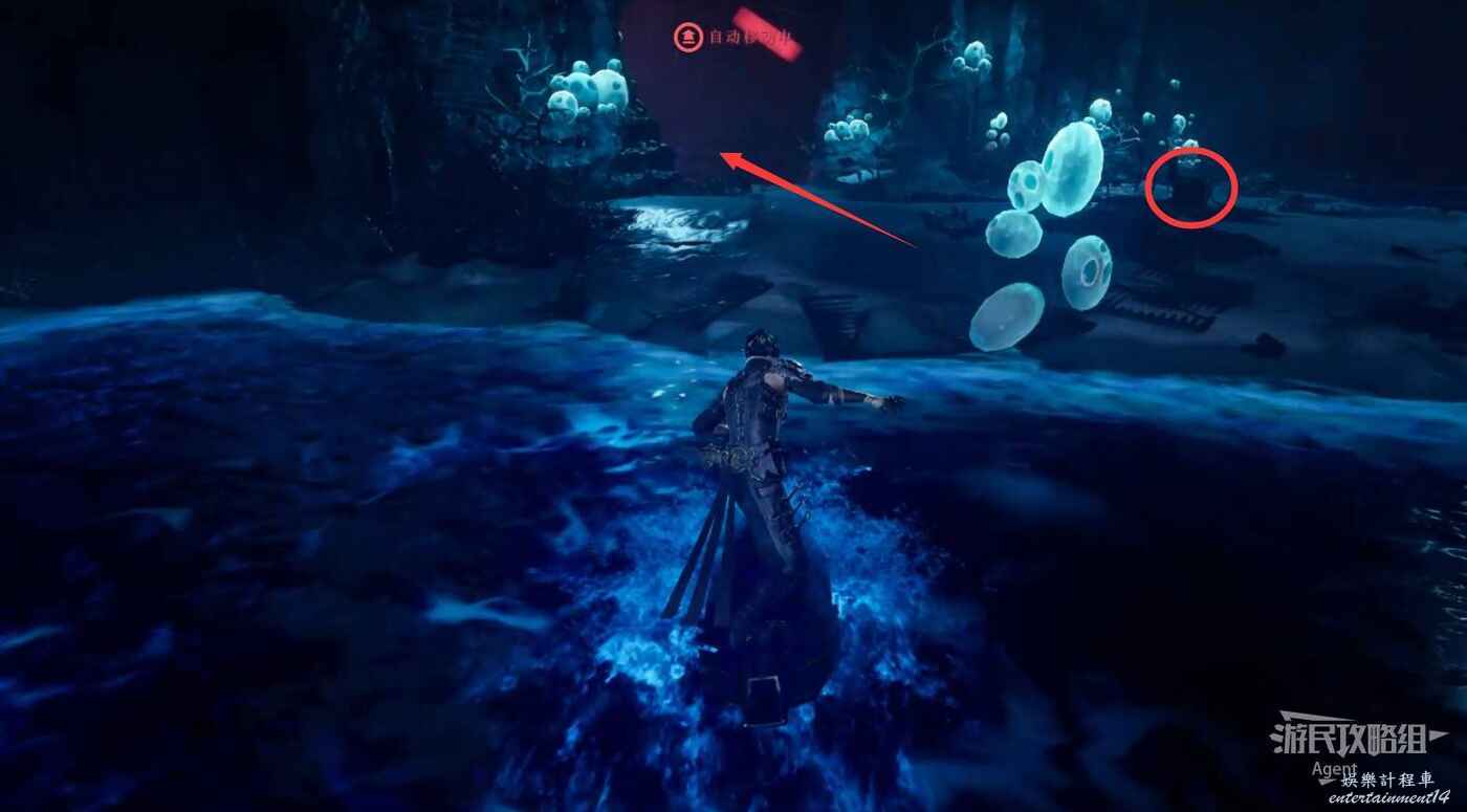 繼續貼著左側走,來到有發光痕跡的陸地,等下探索完就來這裡沿著發光痕跡走主路。