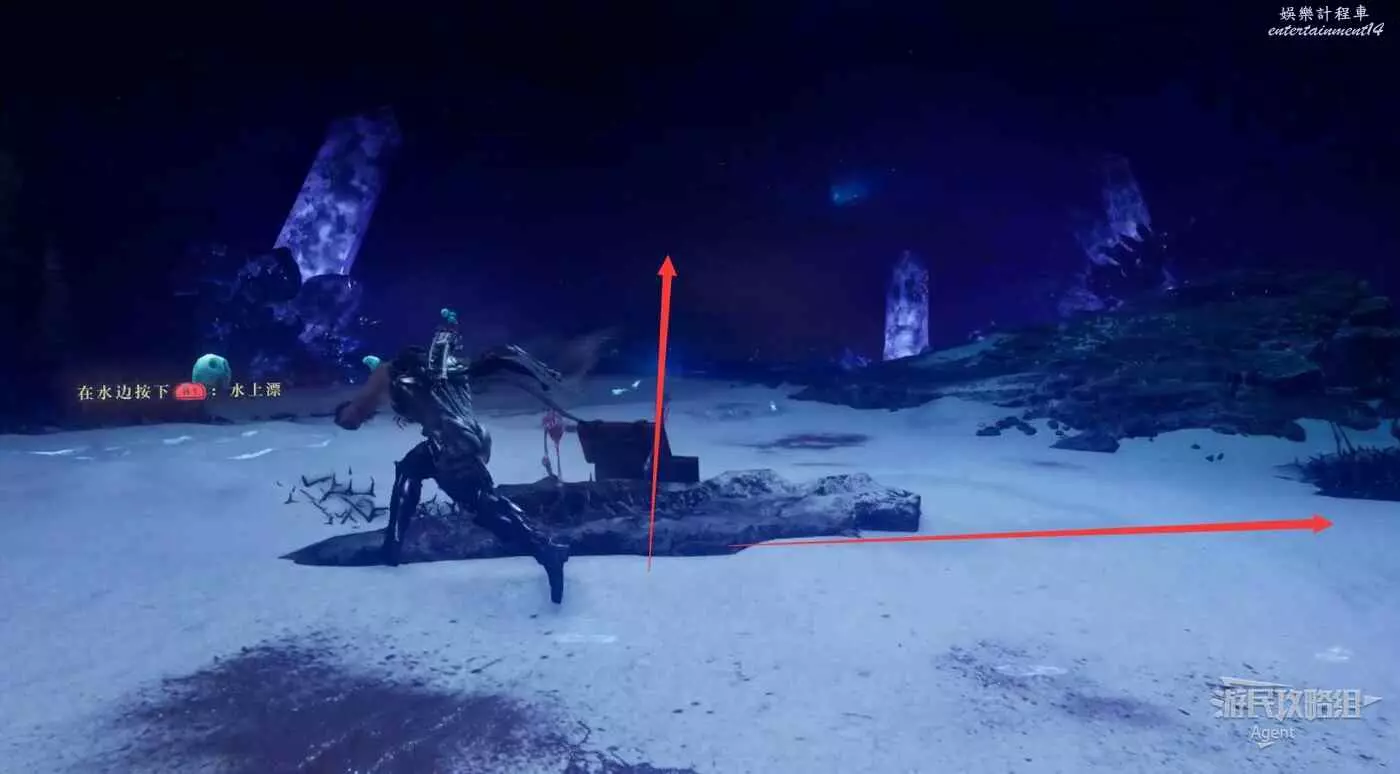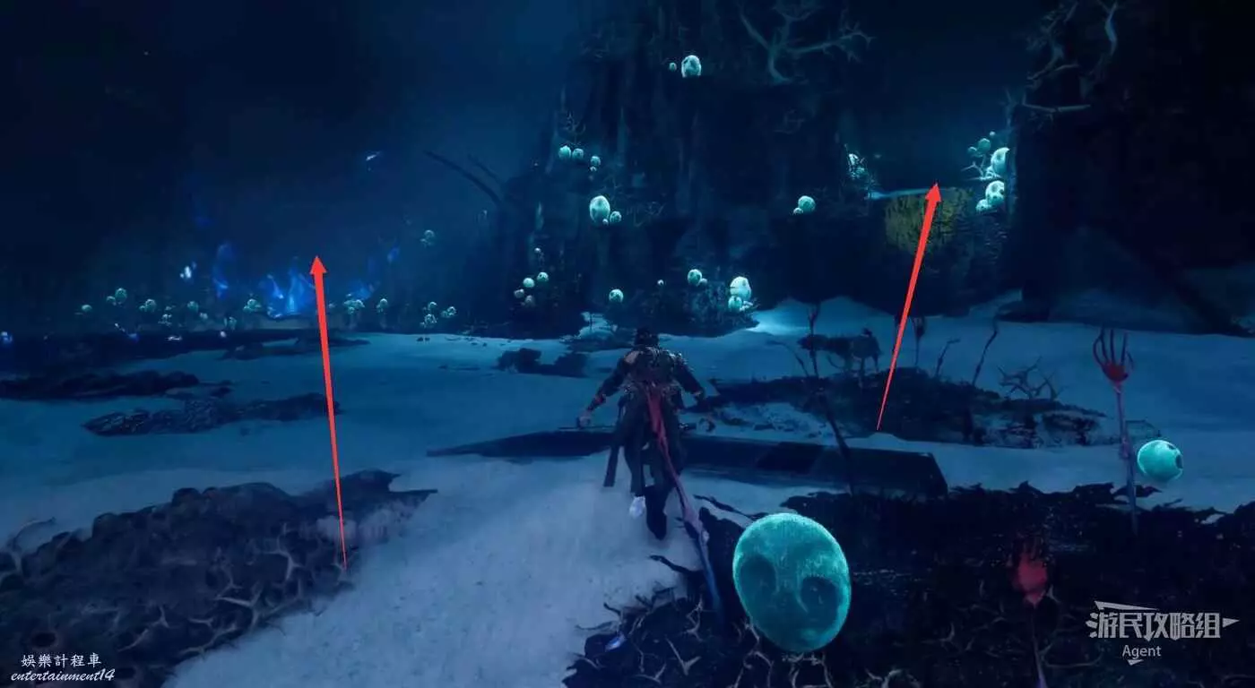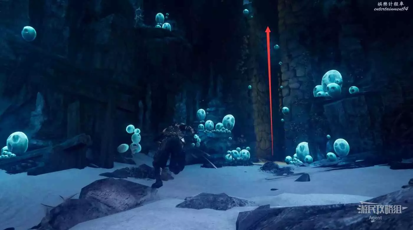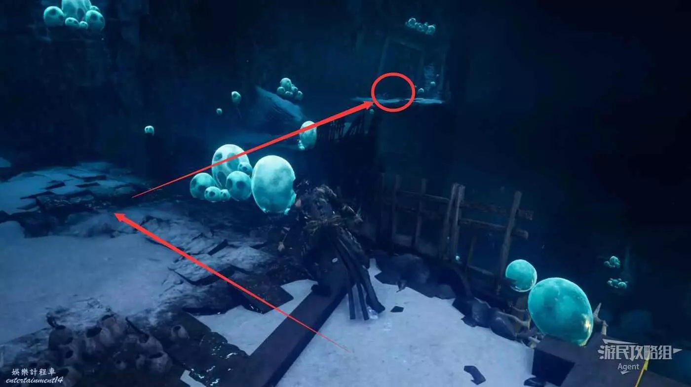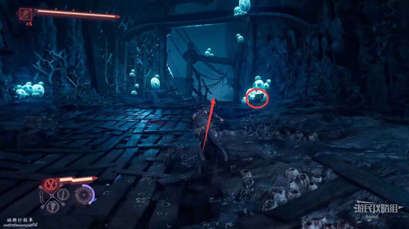 繼續貼著左側走,來到有發光痕跡的陸地,等下探索完就來這裡沿著發光痕跡走主路。