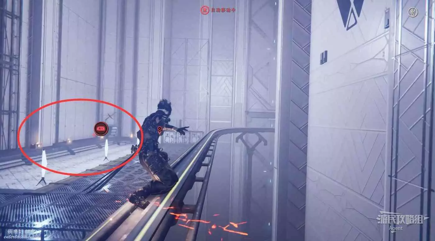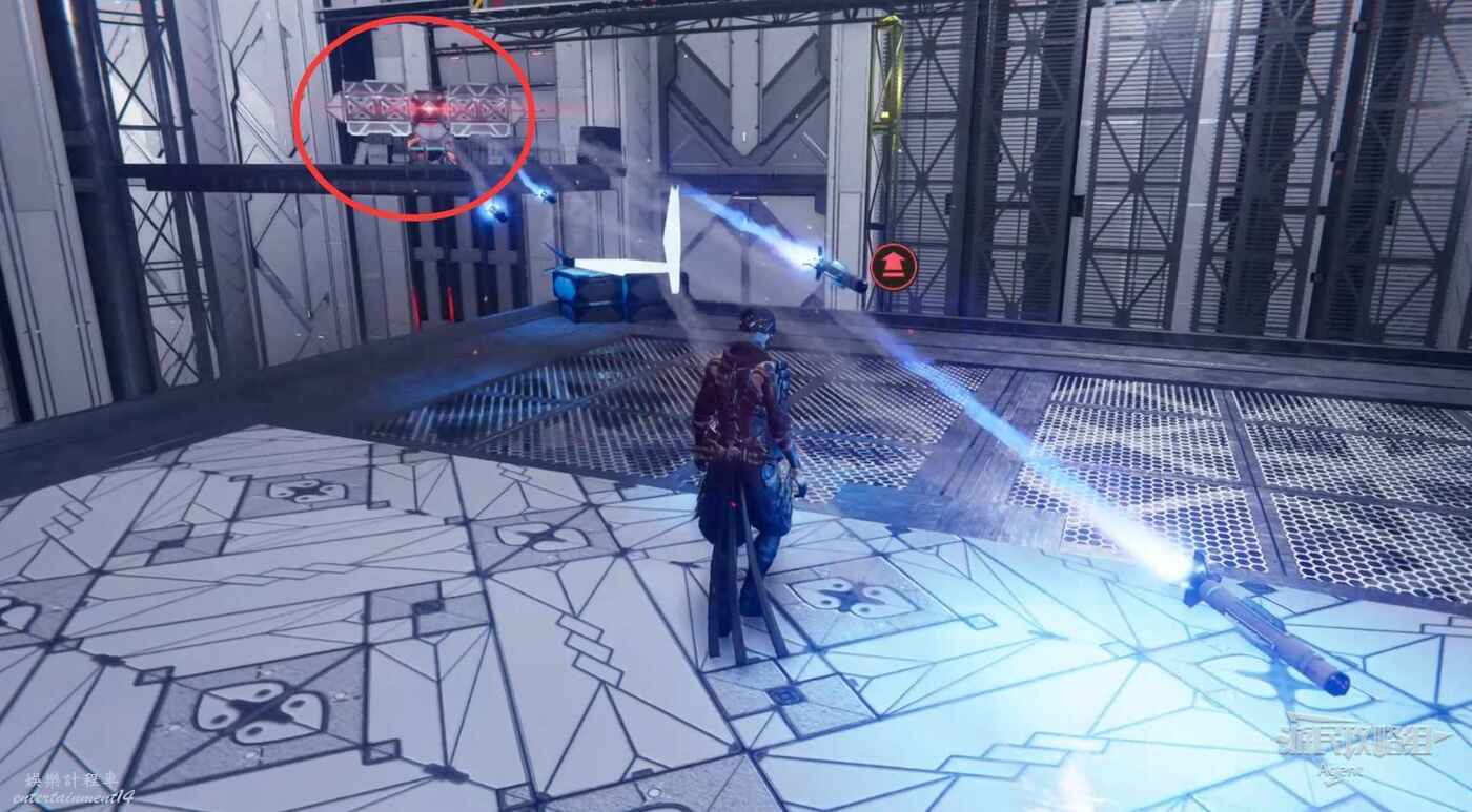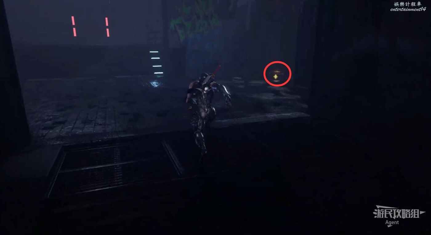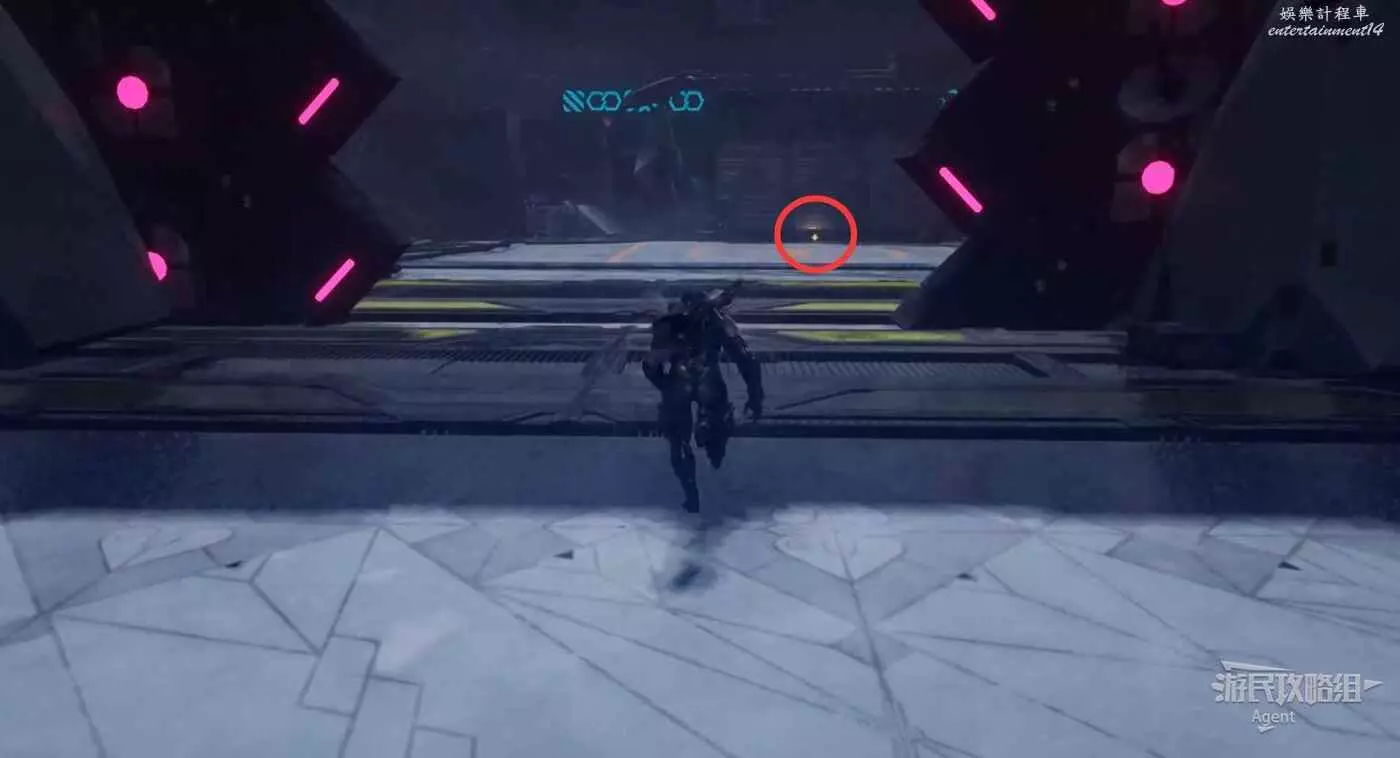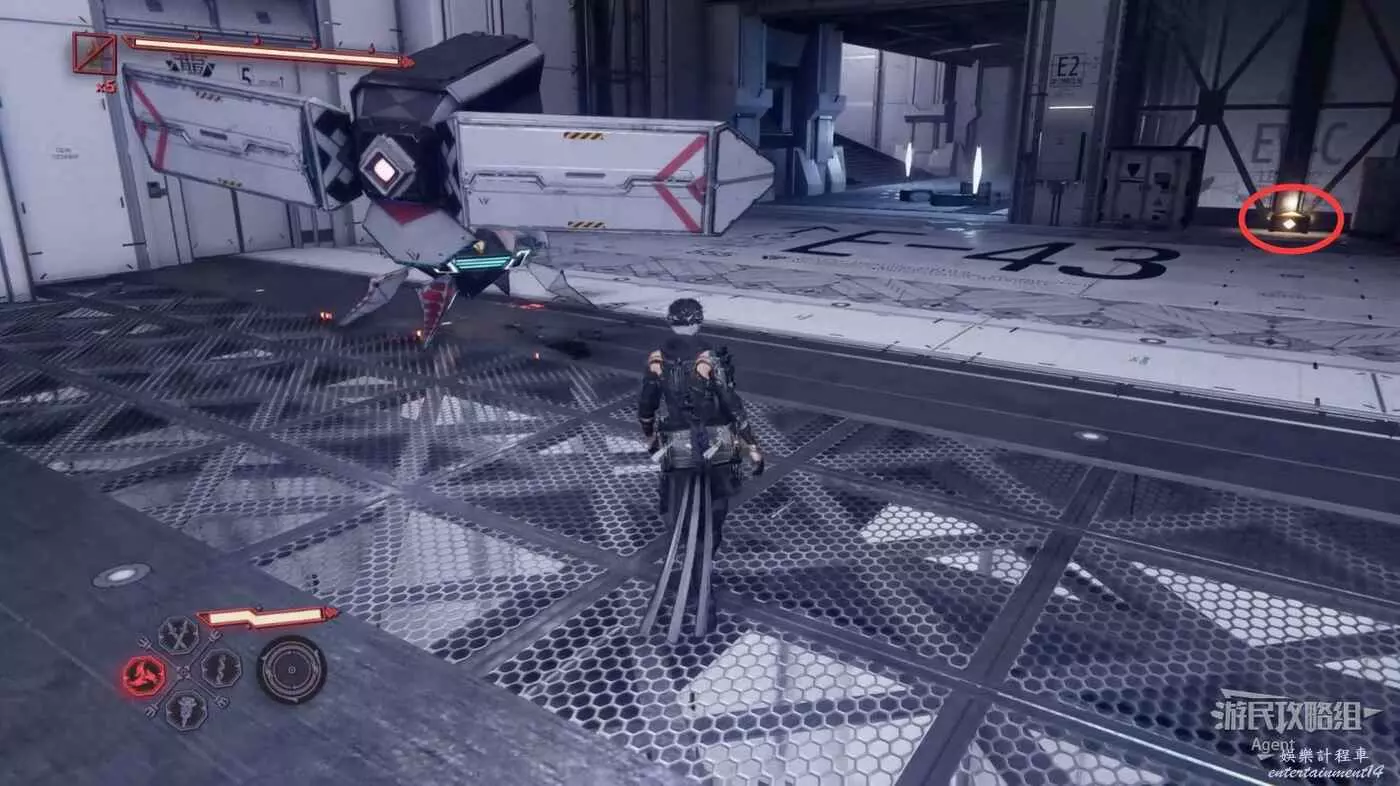 跳上豎井遇到終端,往前走遇到第一台D-0037先驅者,任務要求用暗器打。