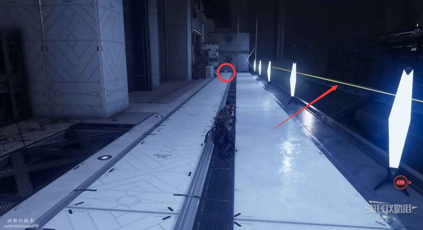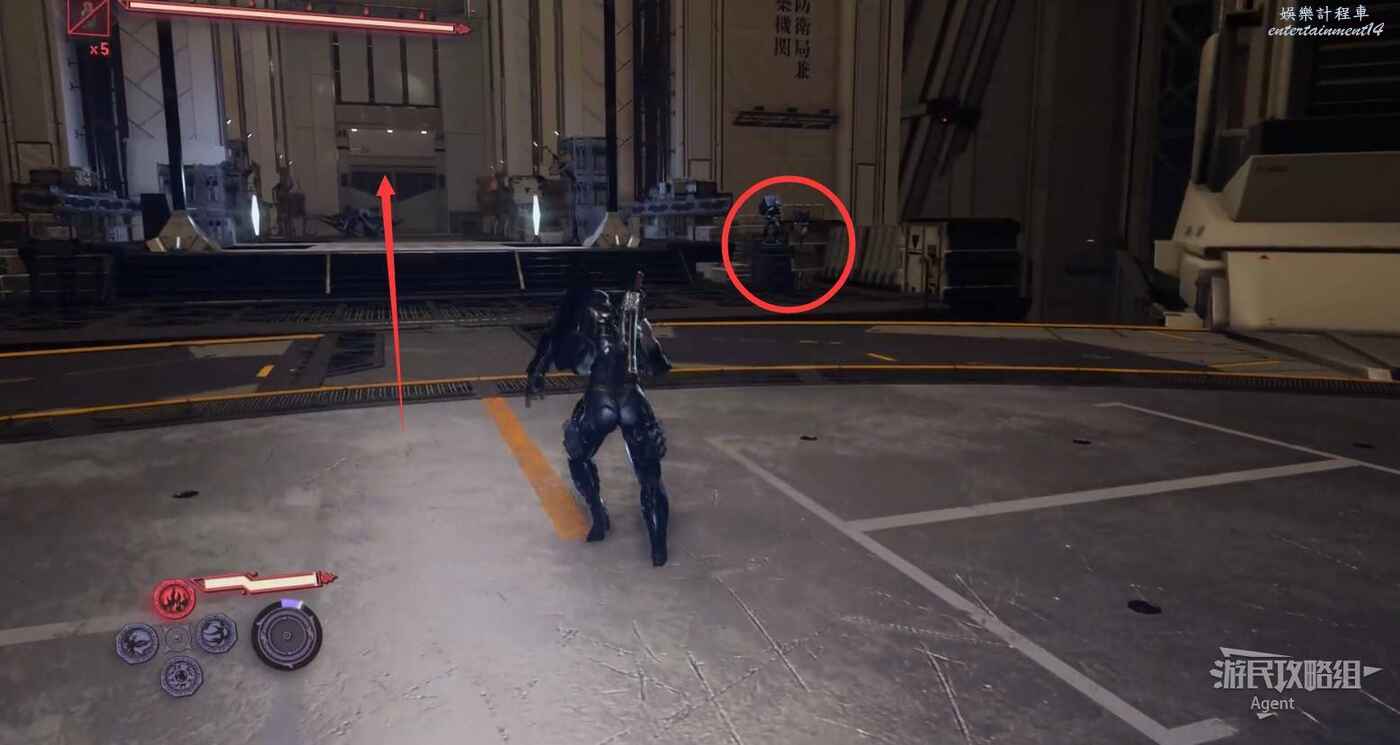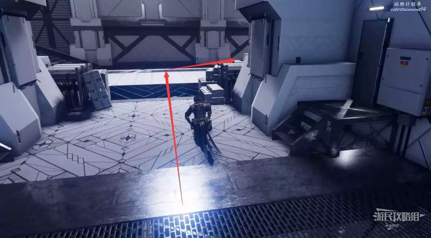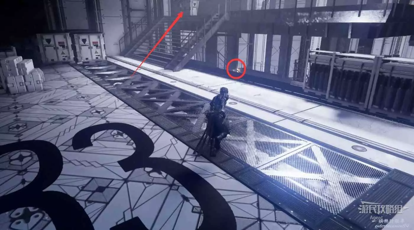 跳上豎井遇到終端,往前走遇到第一台D-0037先驅者,任務要求用暗器打。