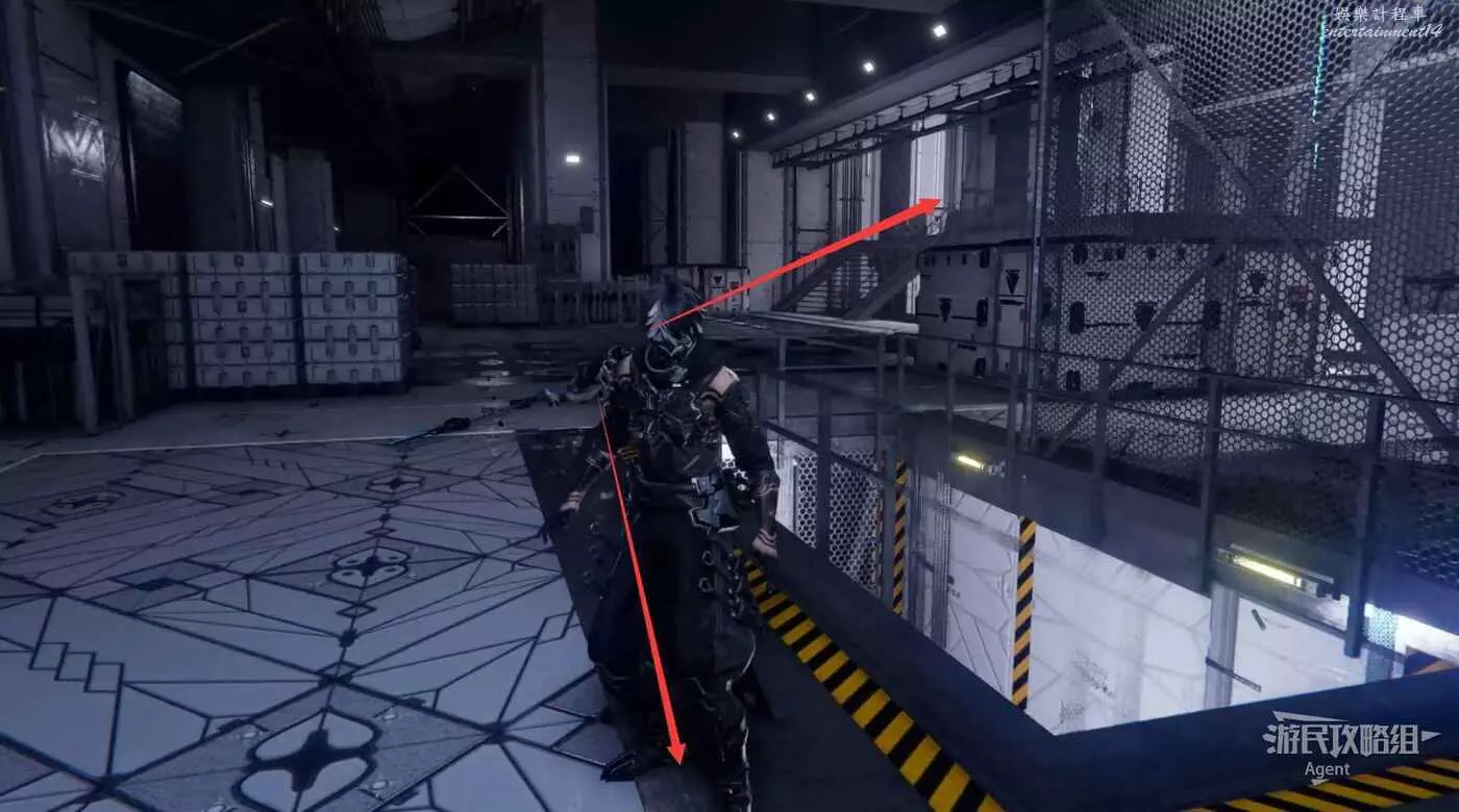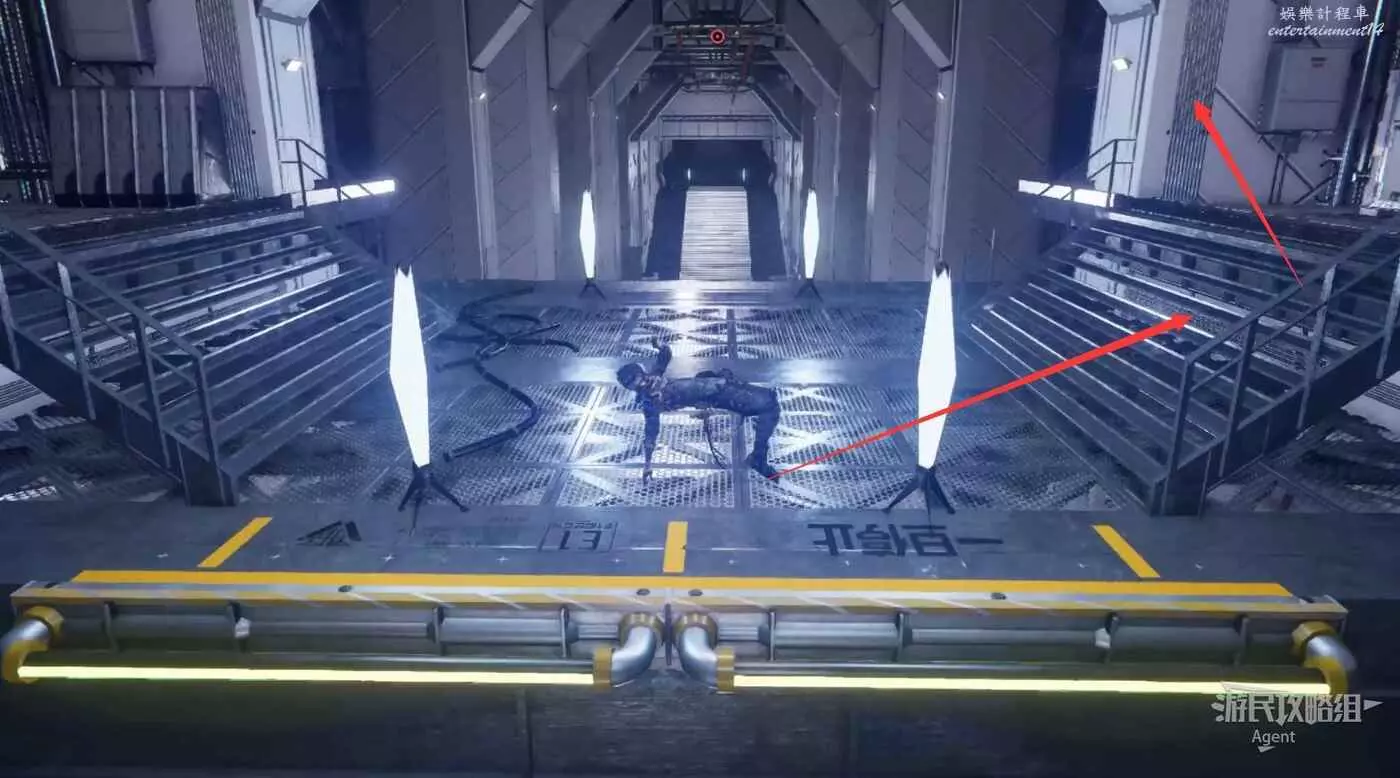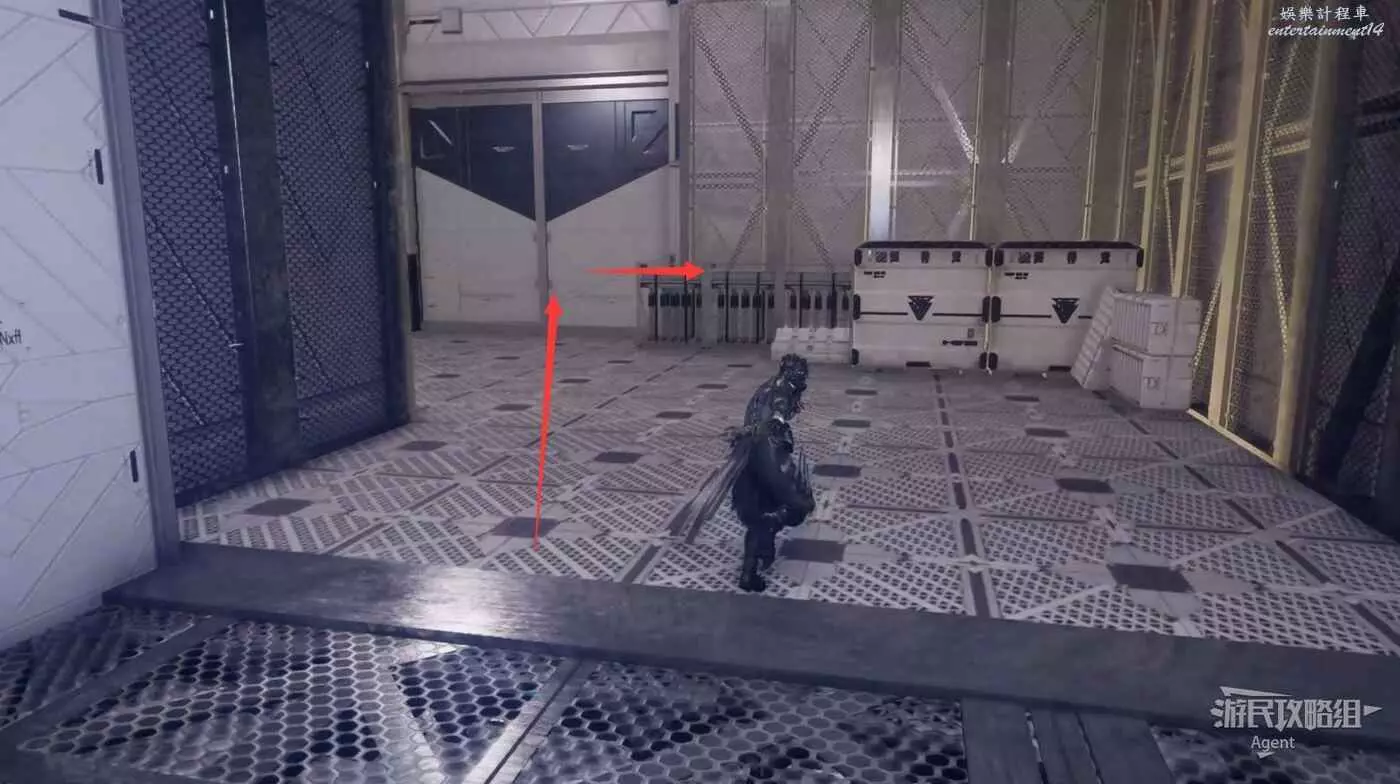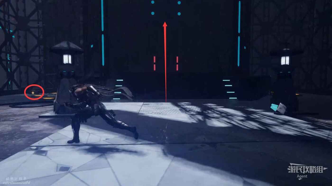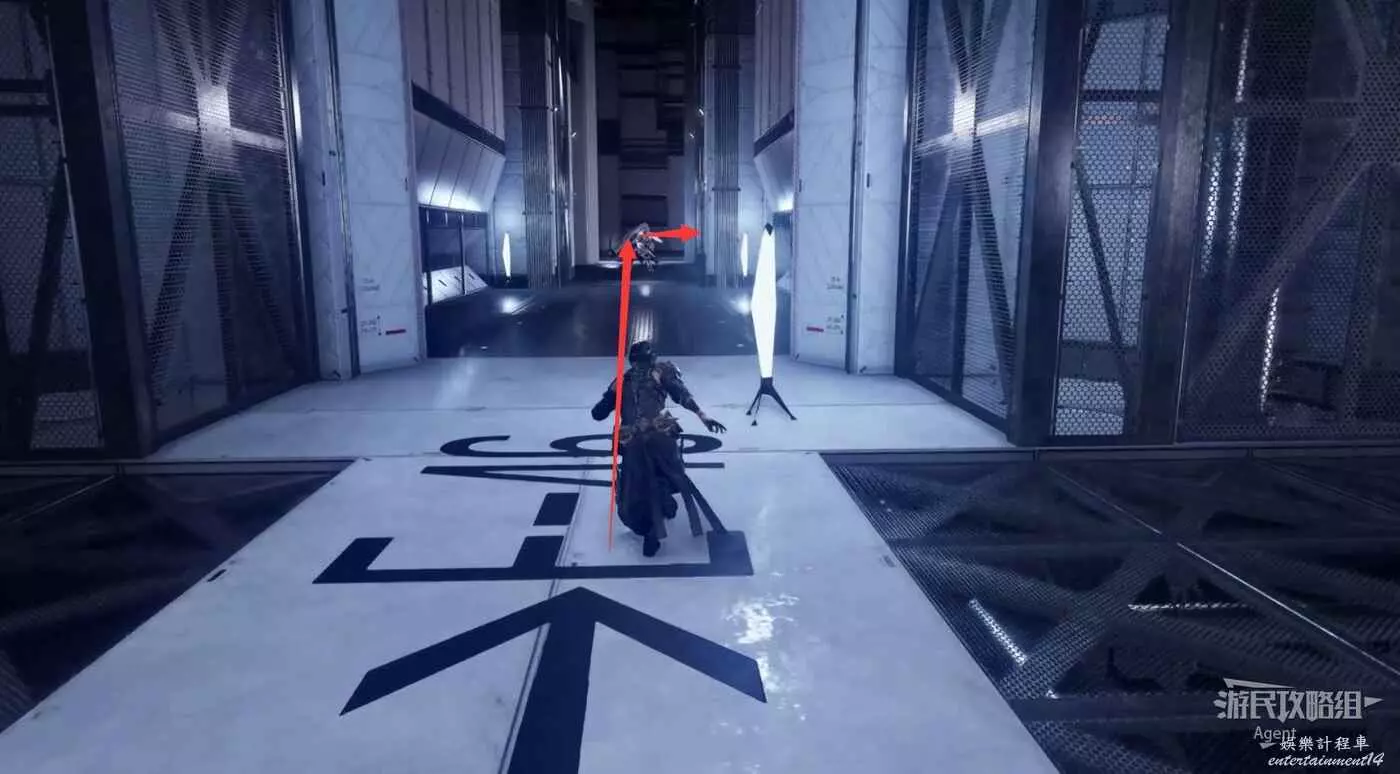 跳上豎井遇到終端,往前走遇到第一台D-0037先驅者,任務要求用暗器打。