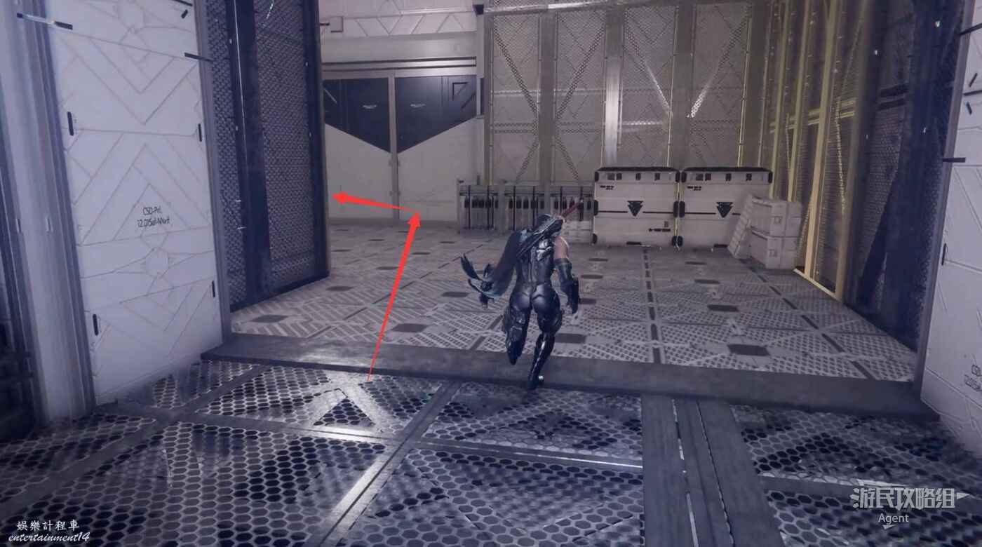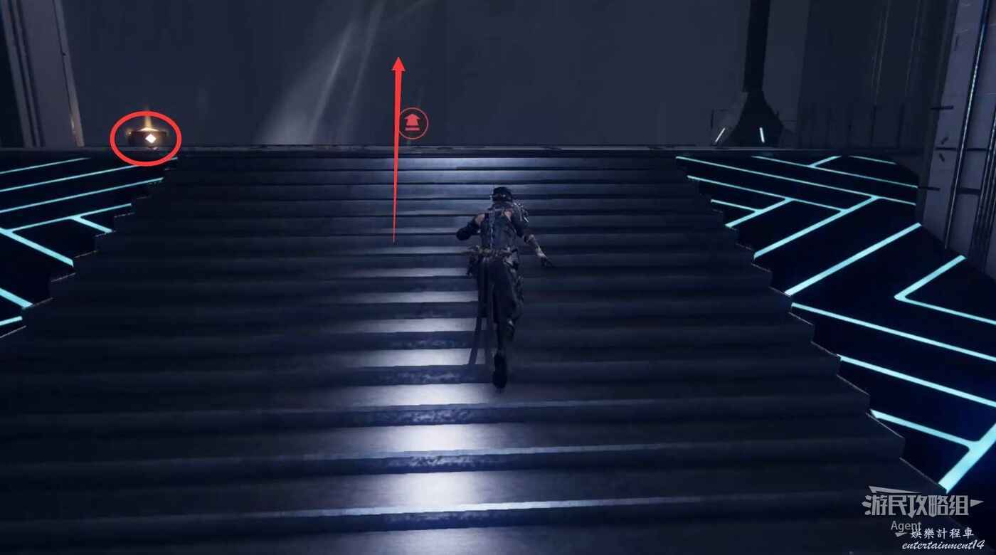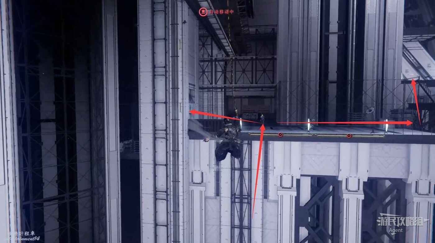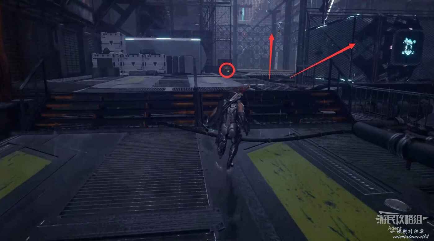 連續蹬牆跳,電梯左邊有個寶箱,然後乘電梯上去。