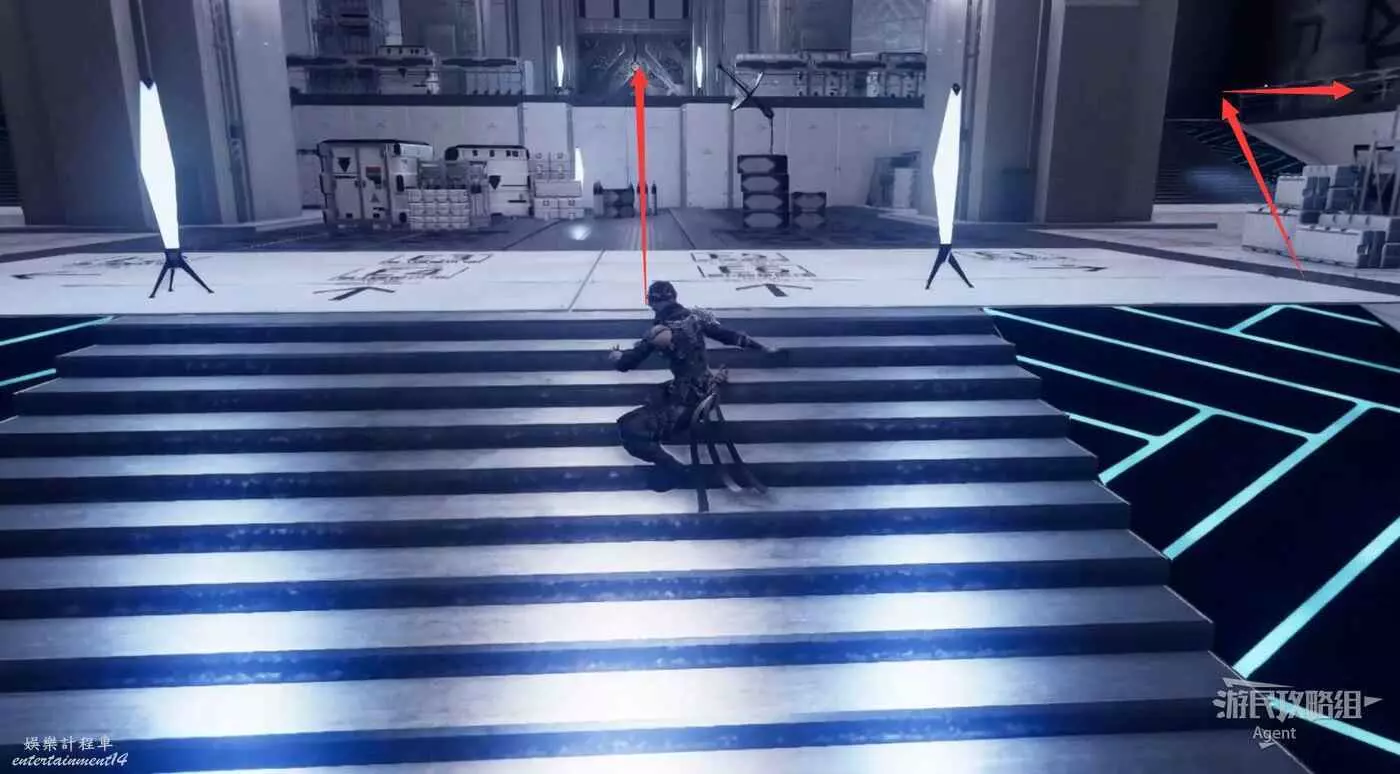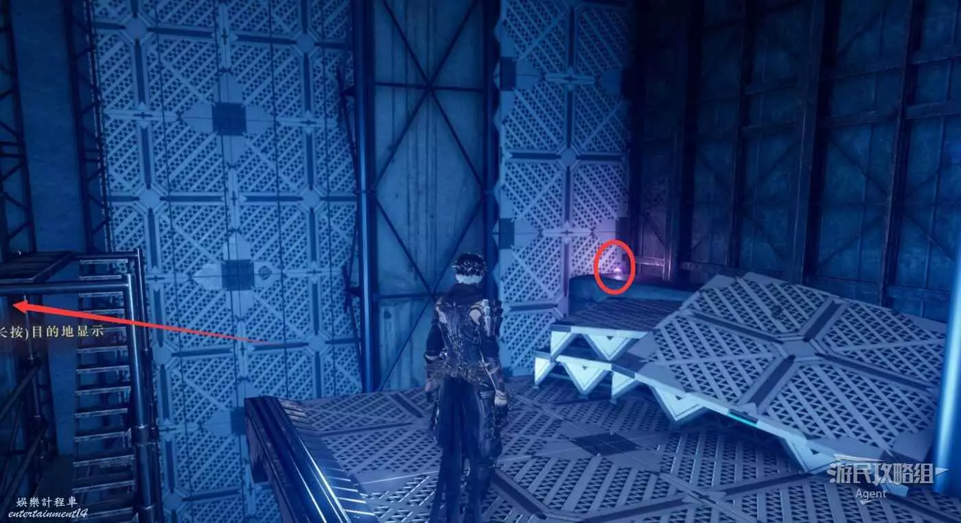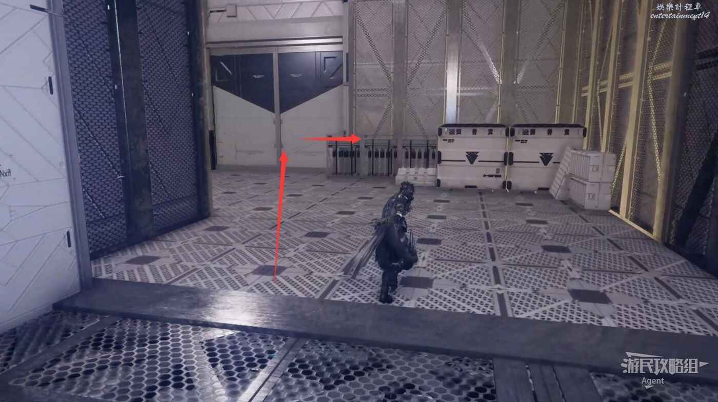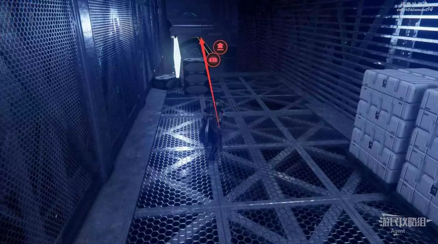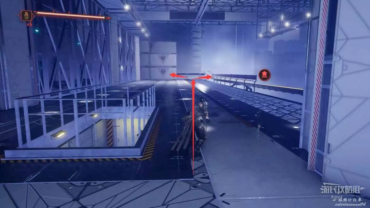 連續蹬牆跳,電梯左邊有個寶箱,然後乘電梯上去。