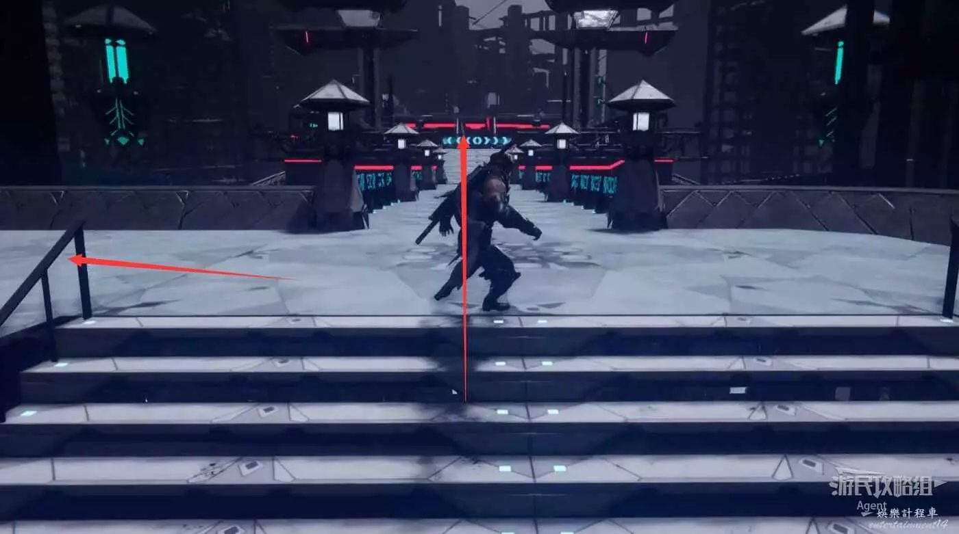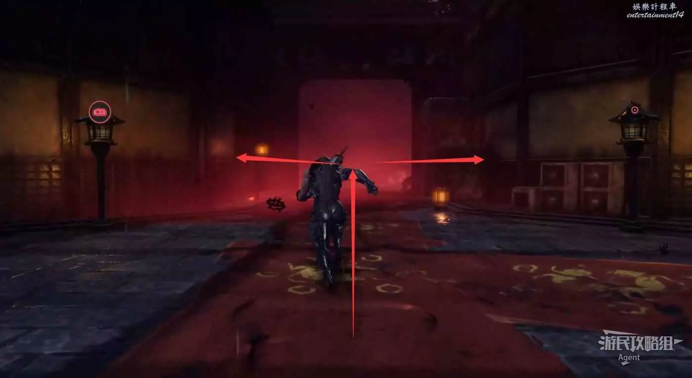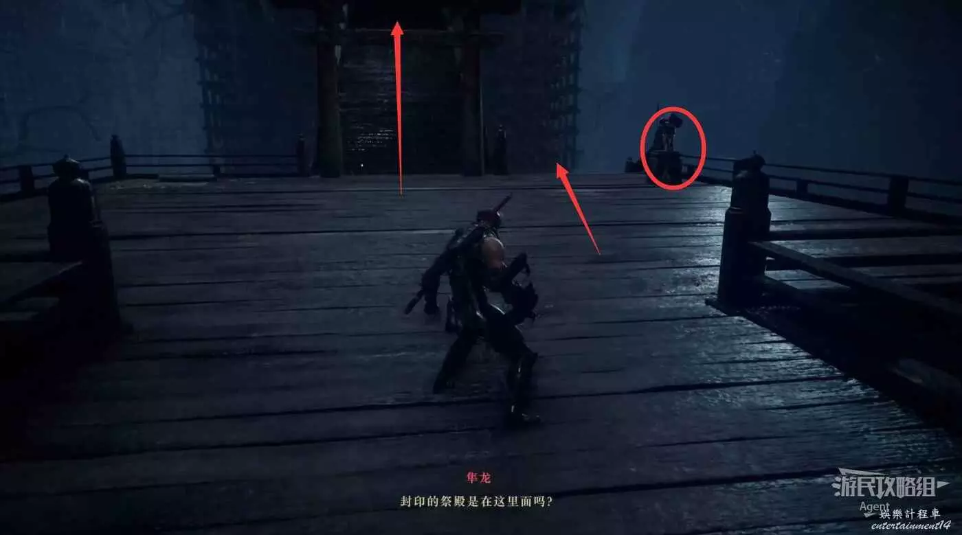 接完任務先去下圖右邊爬上梯子,完成任務“滅殺持刀殺人者”,然後回來走左邊進入結界。
