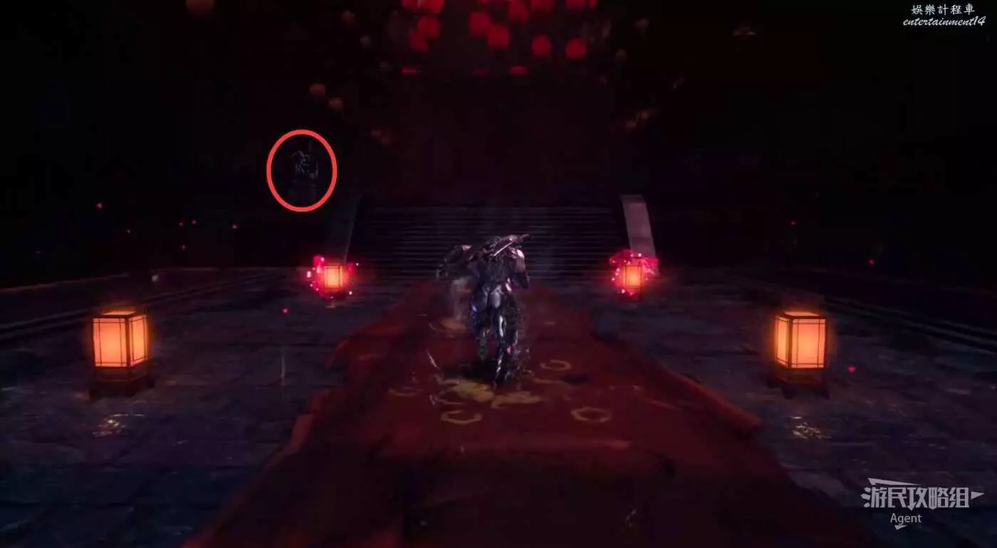 來到下圖的階梯處,先去左邊屏風後面找到【煉獄】,然後回來走上階梯。