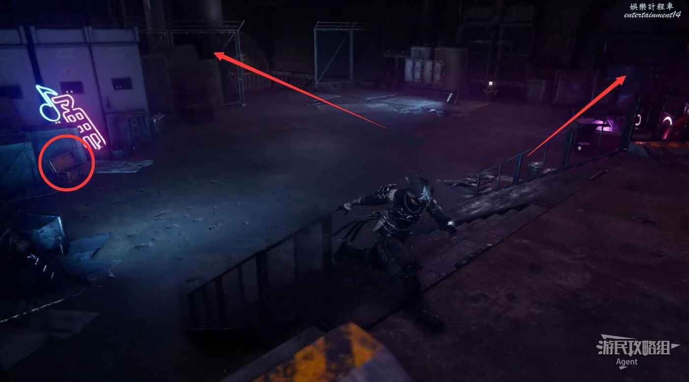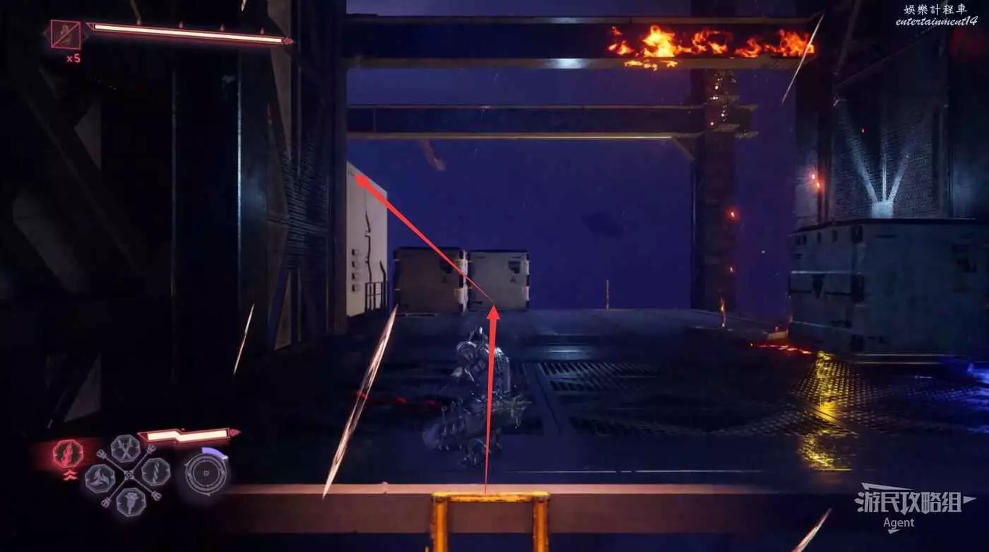 拿了寶箱後,利用這兩個靠近的集裝箱組成的豎井,還能往上跳,上面有塊較大的隱藏區域。