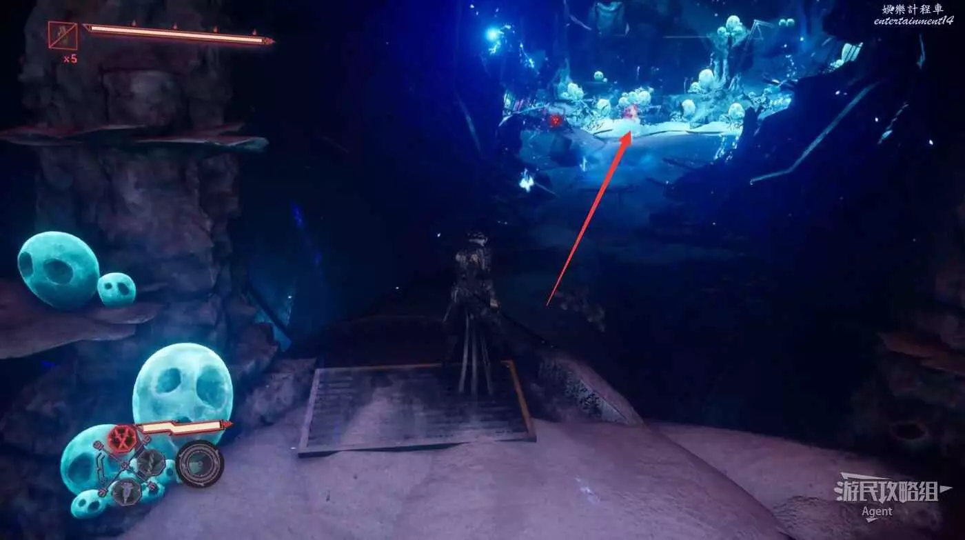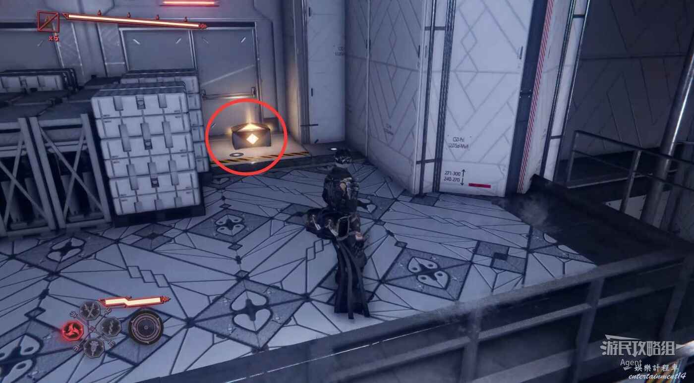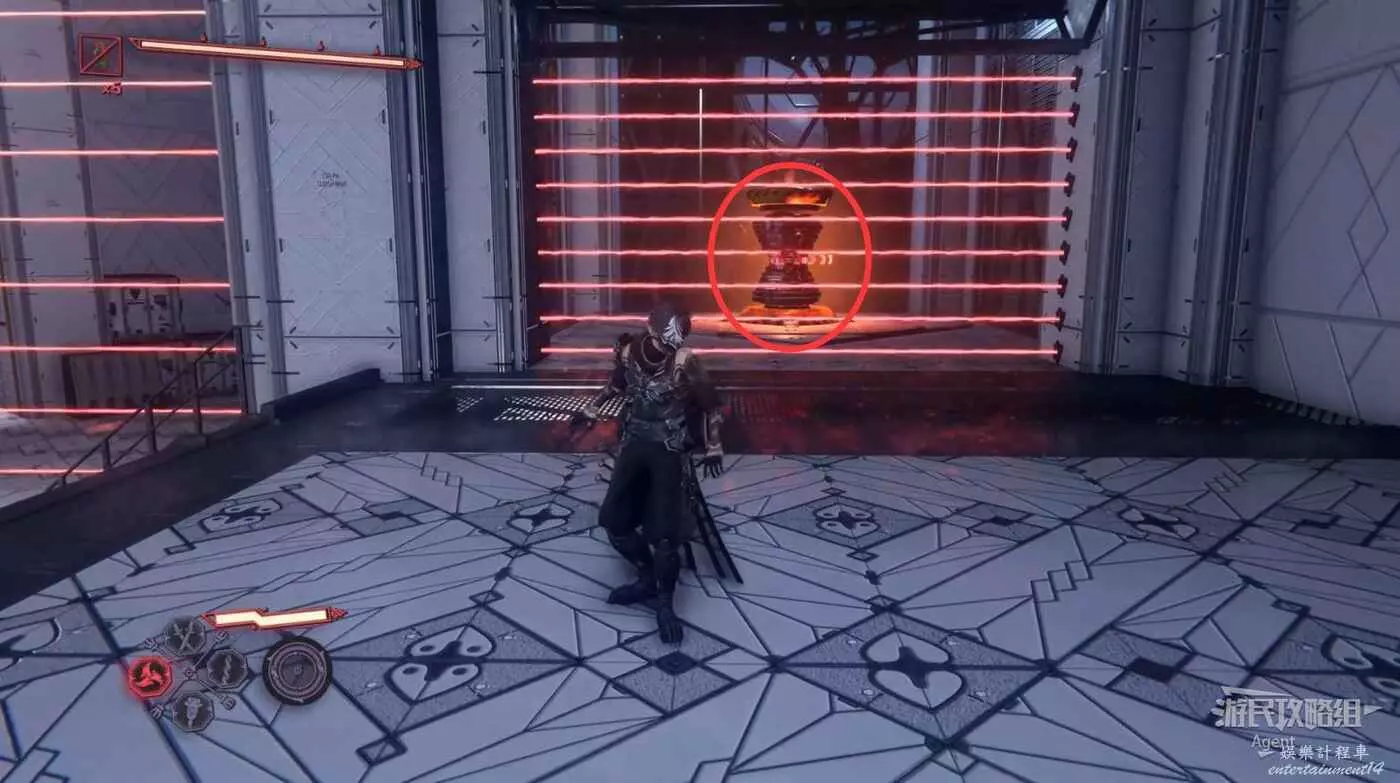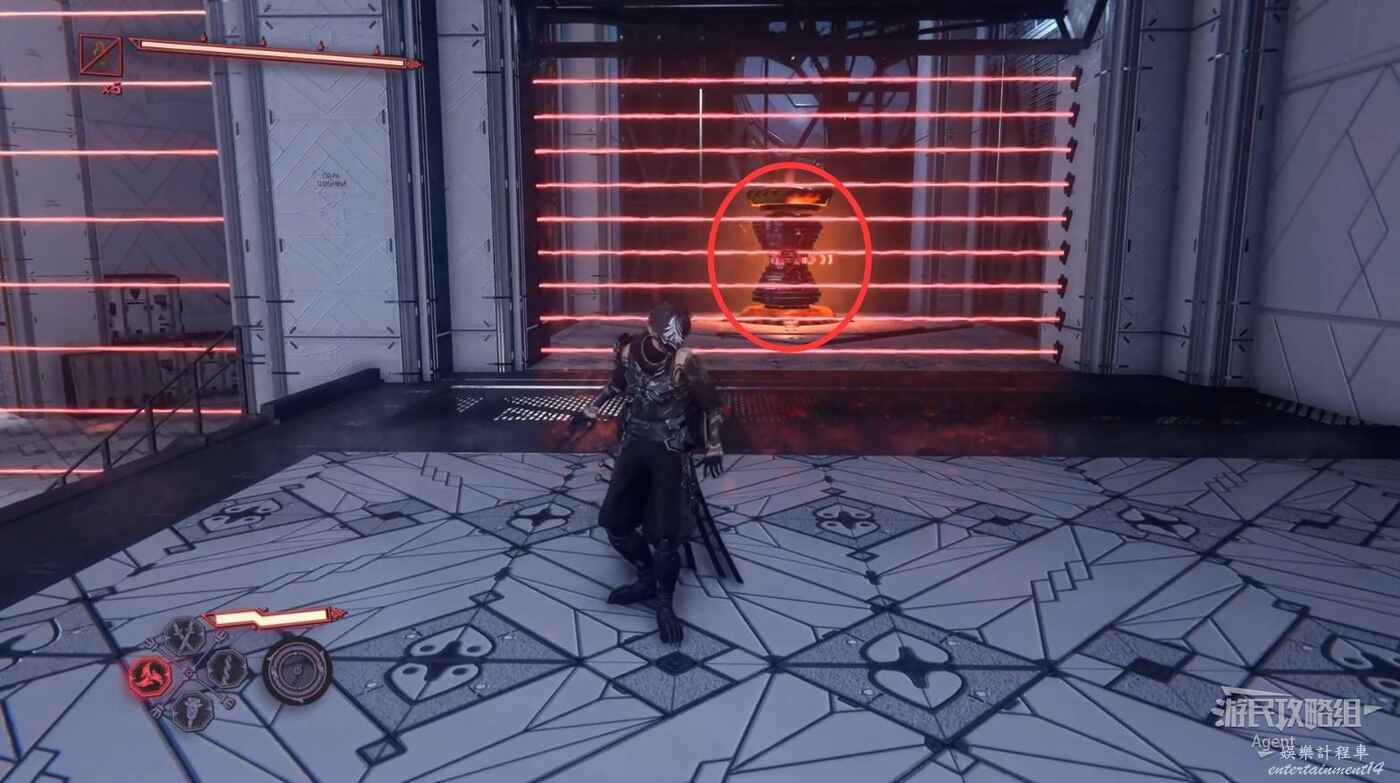然後出來等鐳射恢復,再摧毀機關關閉鐳射,去左邊跳上豎井有個寶箱。