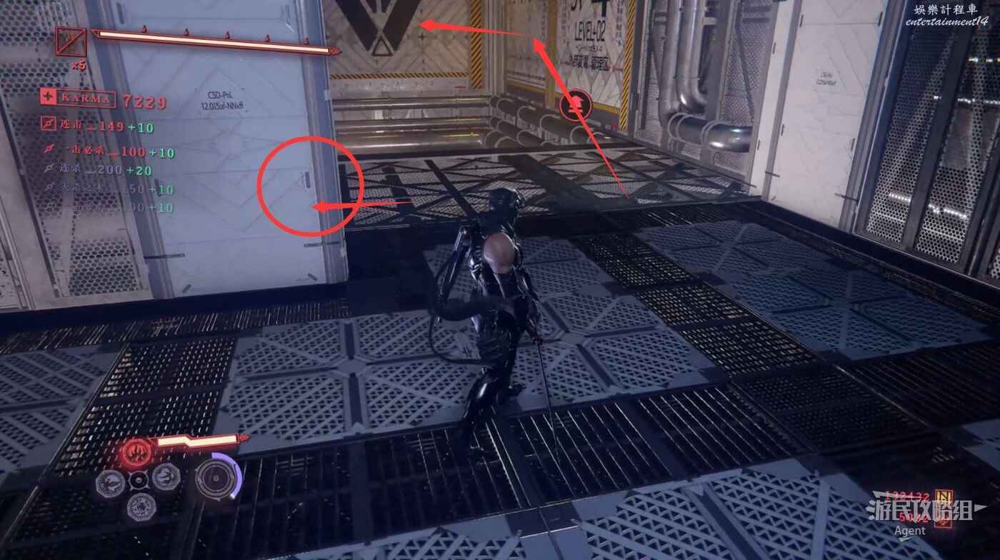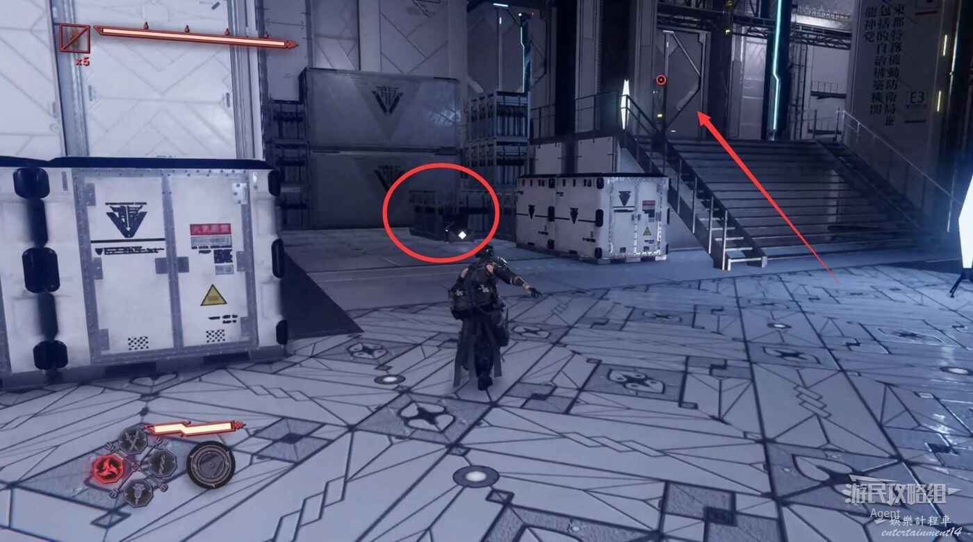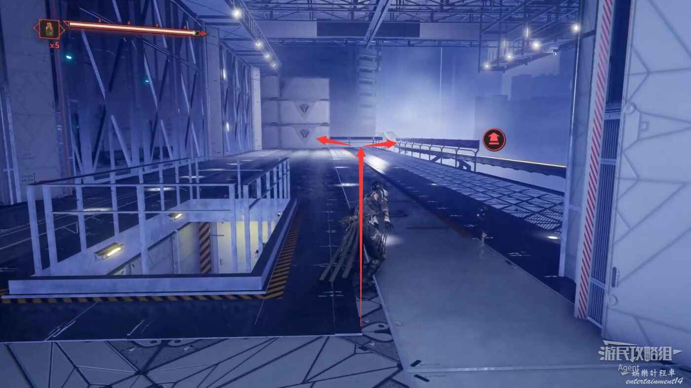 然後出來等鐳射恢復,再摧毀機關關閉鐳射,去左邊跳上豎井有個寶箱。