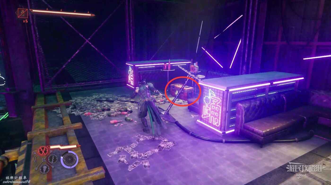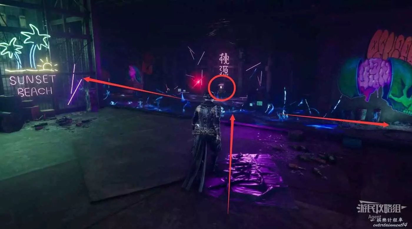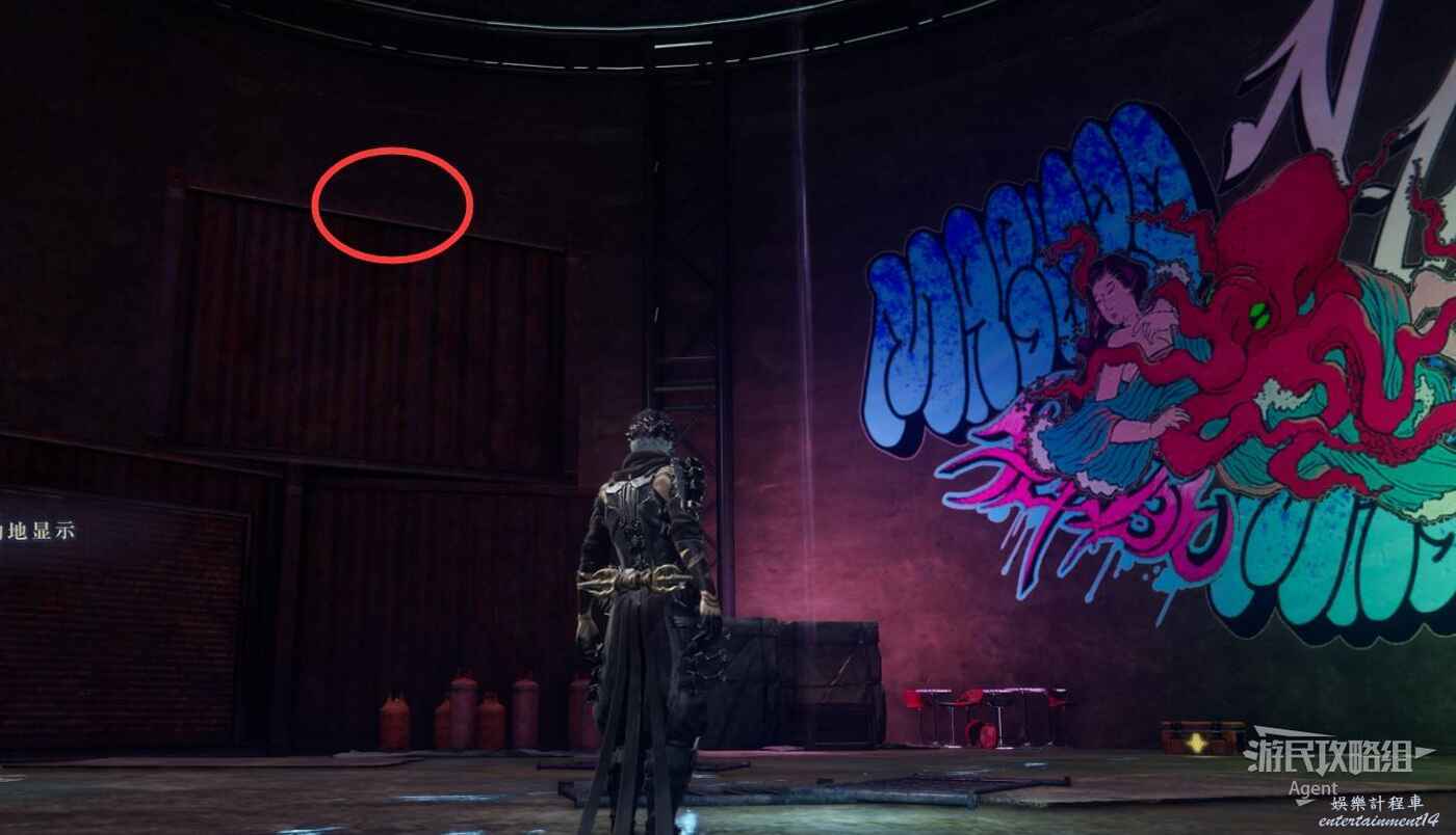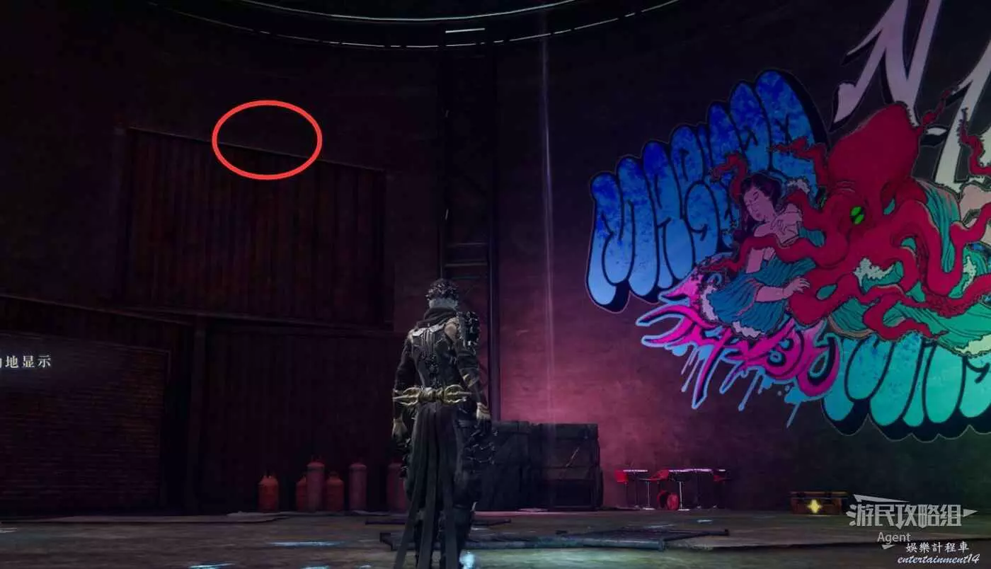選擇章節8,穿過迪廳後跳下來是下水道,背後牆上有壁畫,牆邊還有個寶箱。