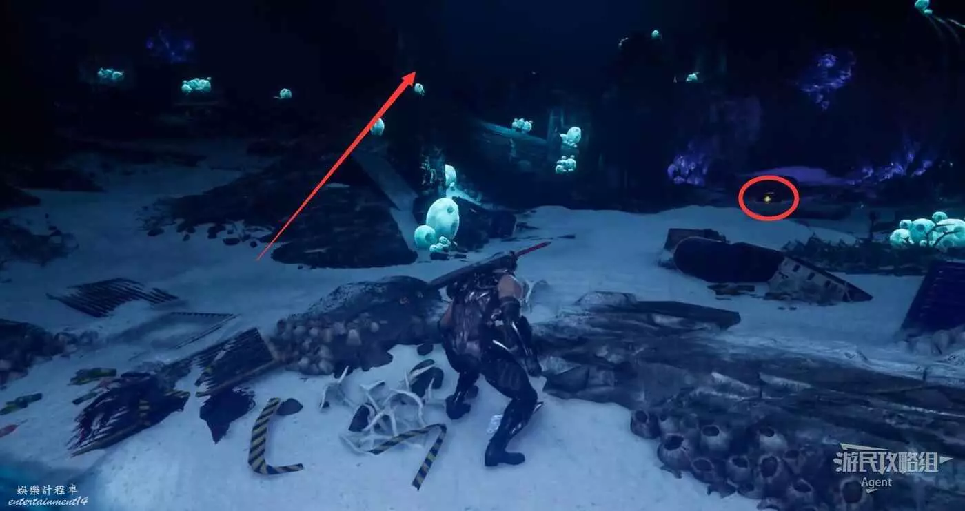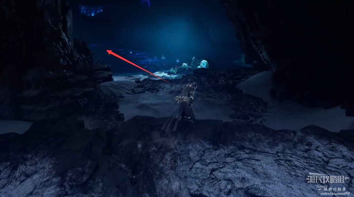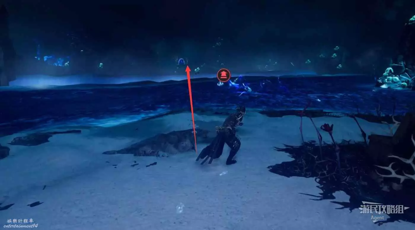 回到剛才有發光痕跡的陸地,沿著發光痕跡走。
