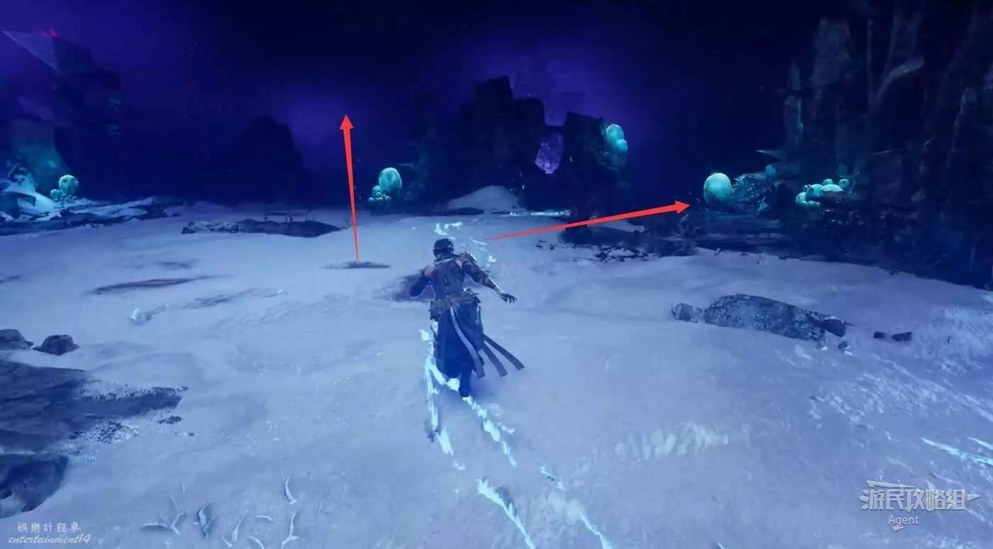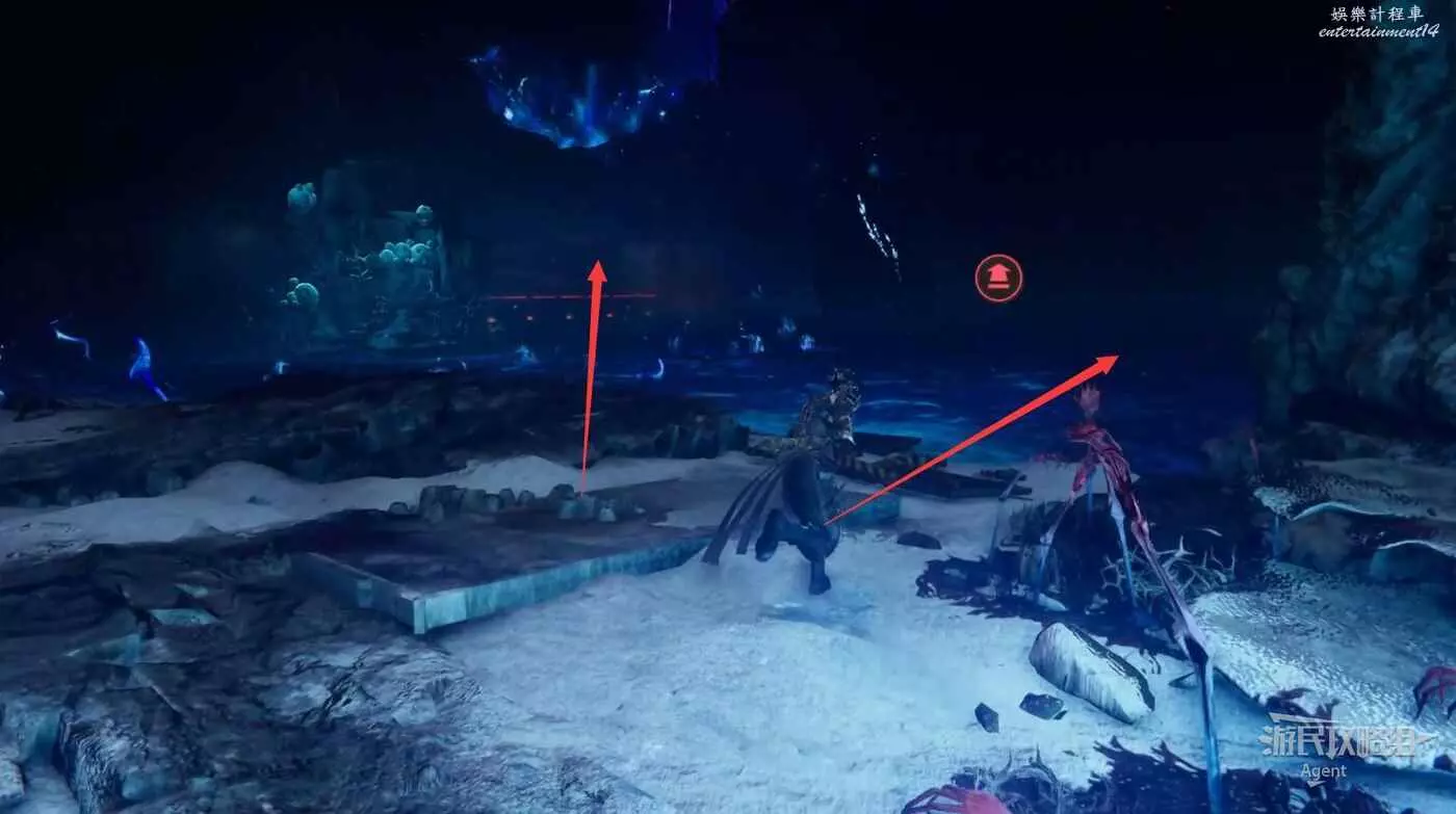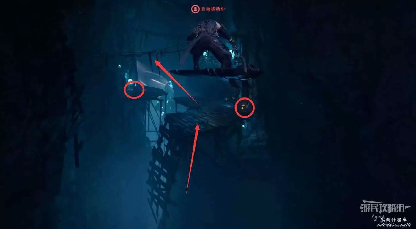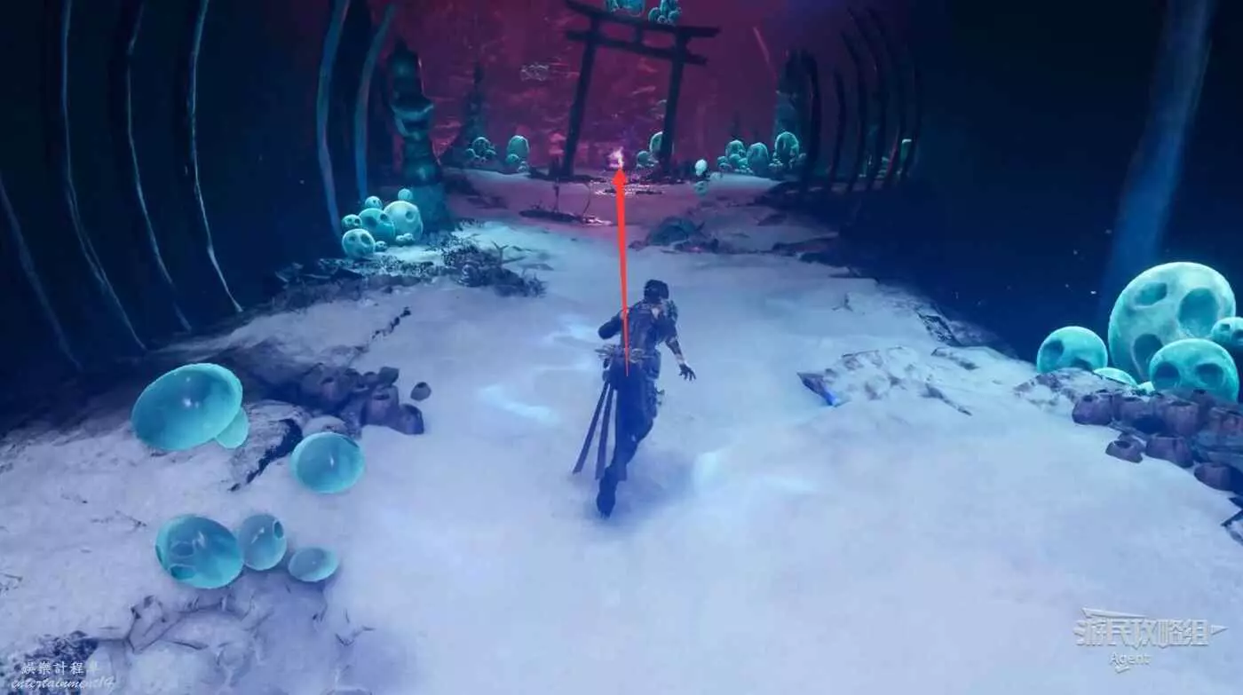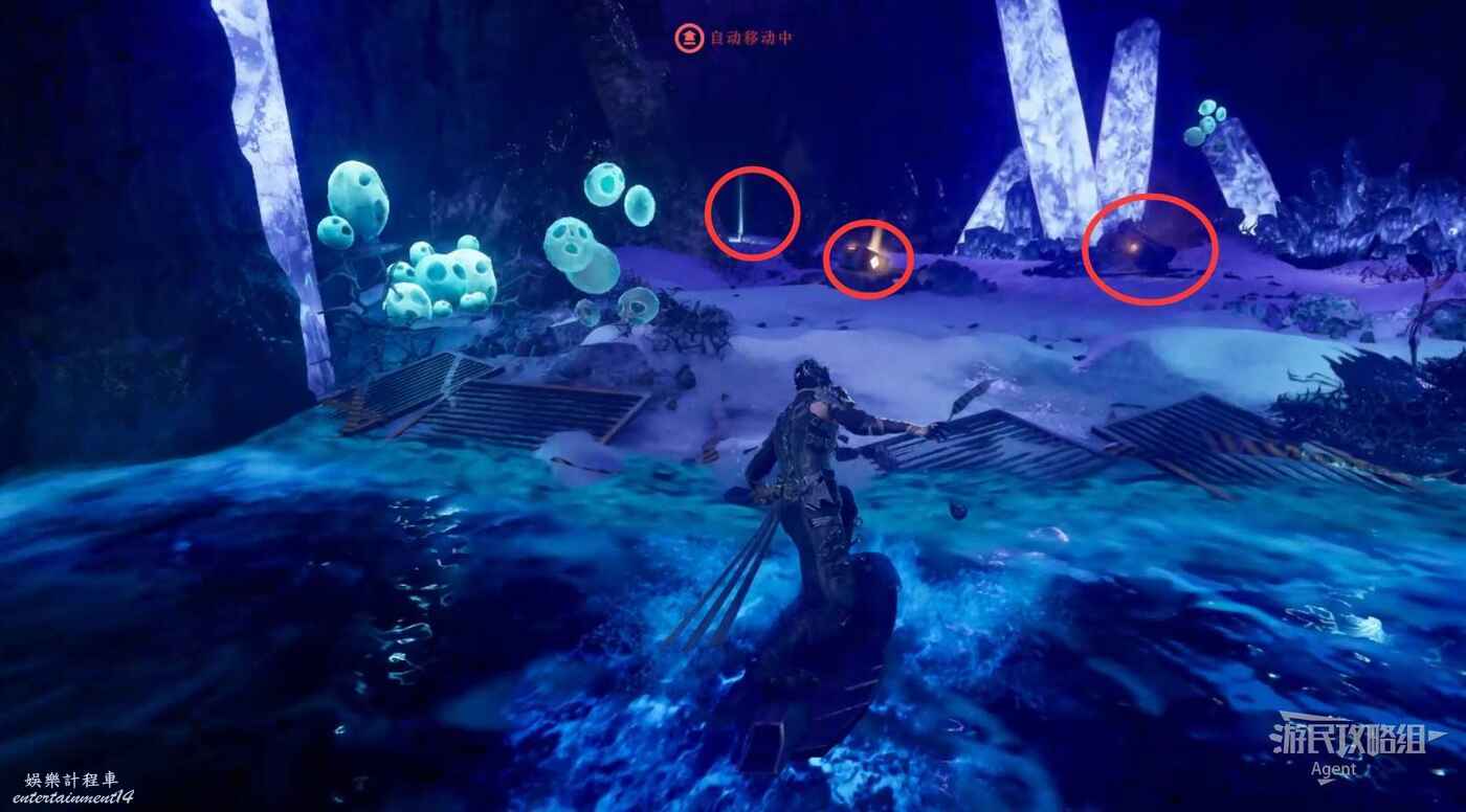 回到中間的小島,沿著發光痕跡前往下一區域。