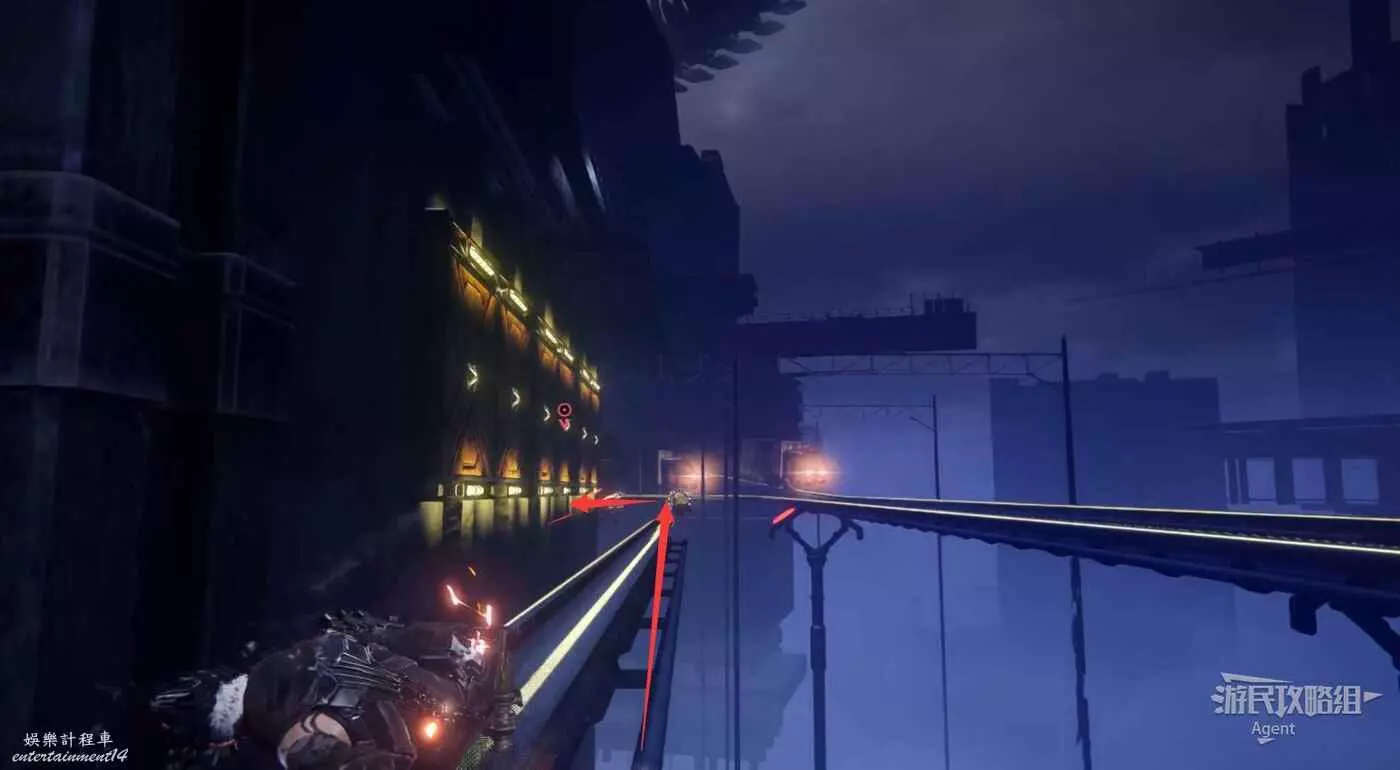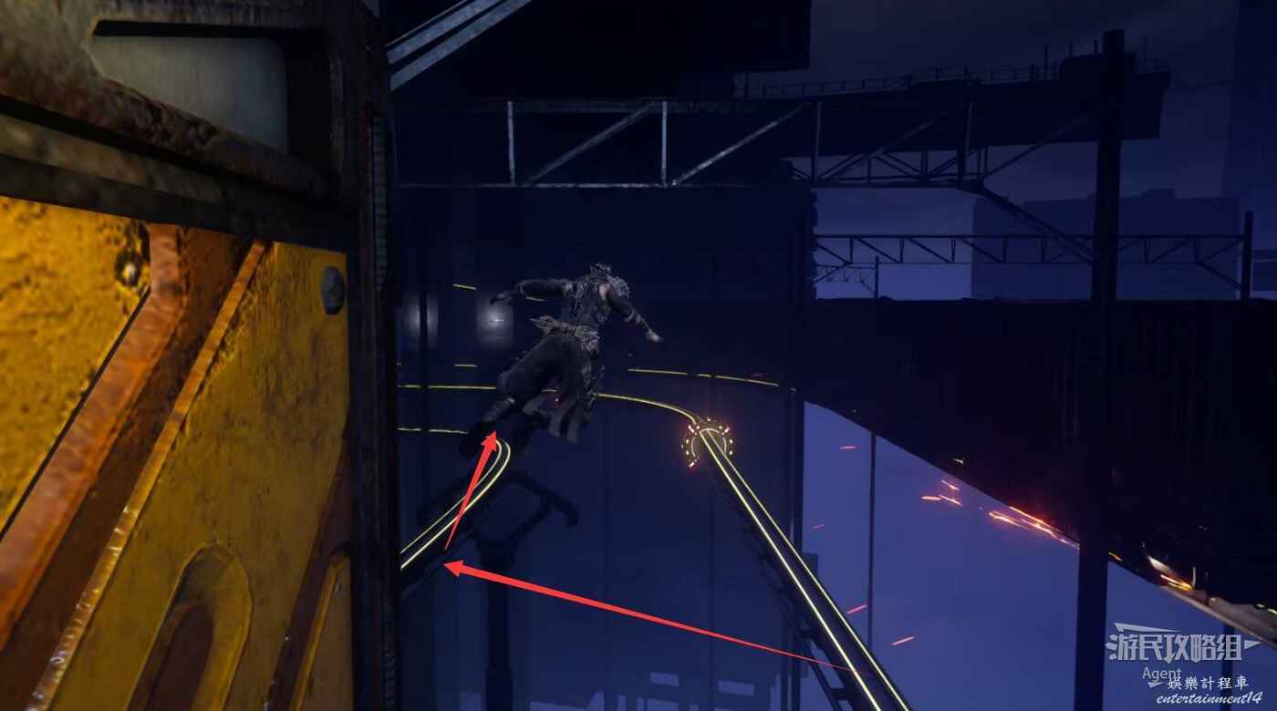 繼續滑過軌道,在左邊的列車過去後,立即往左邊的軌道上跳,這樣會抵達一處隱蔽的所在,找到【煉獄】。