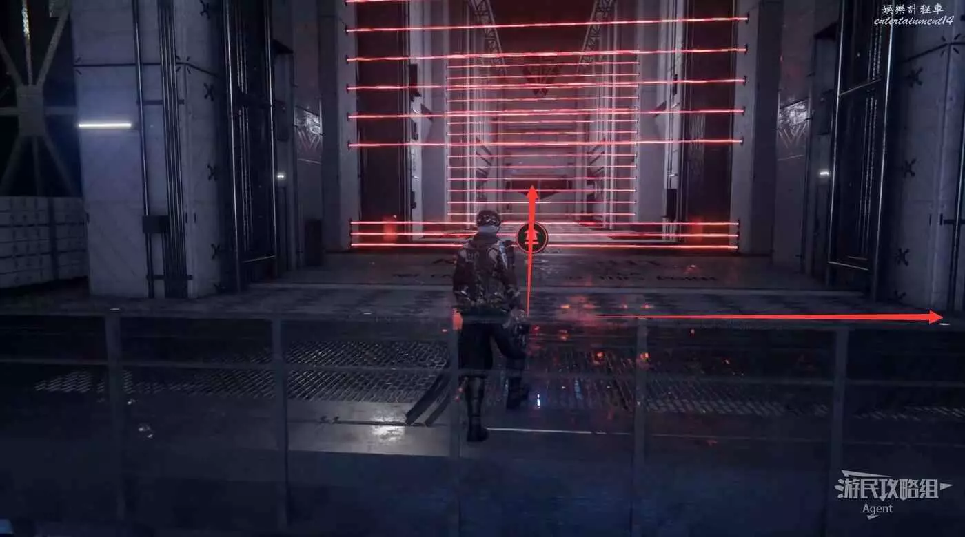 蹬牆跑過來有鐳射擋路,摧毀機關就能解除鐳射。
