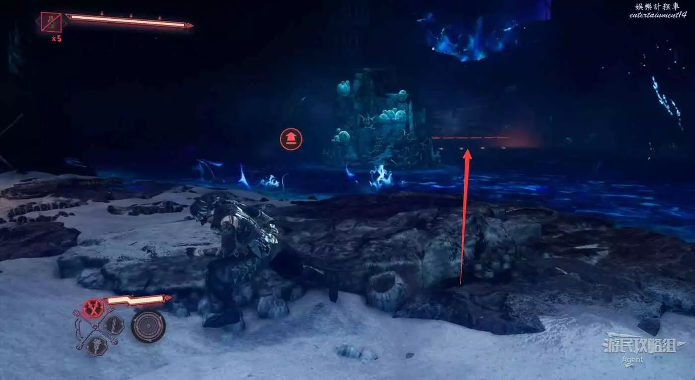 選擇章節6,在本關的中後期,隨風滑翔後滑下一段標誌性的滑坡,解決巨型怪物後,豎井旁寶箱處有條全新的隱藏的路(能看到瀑布和下面的河水)。