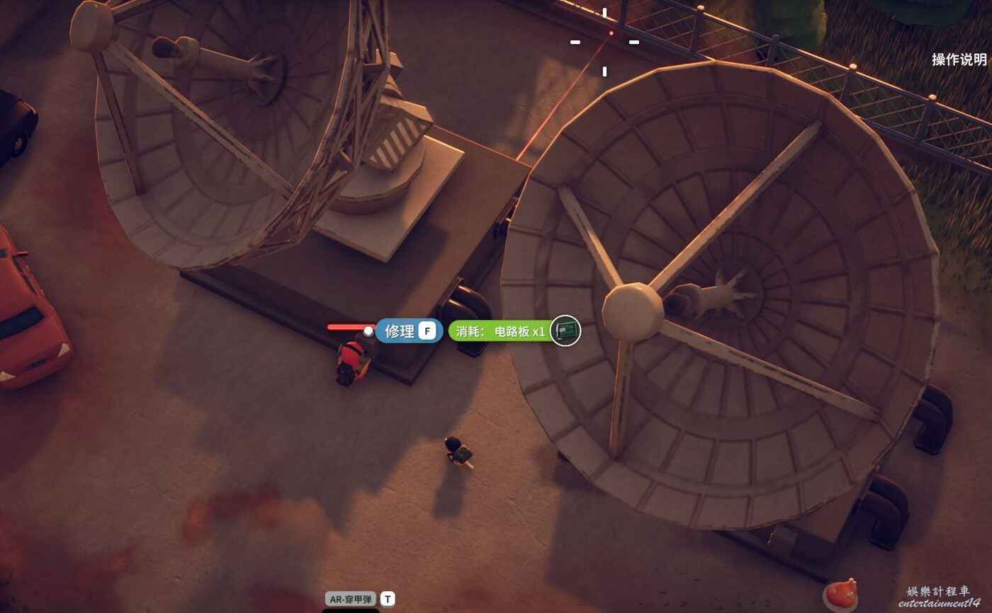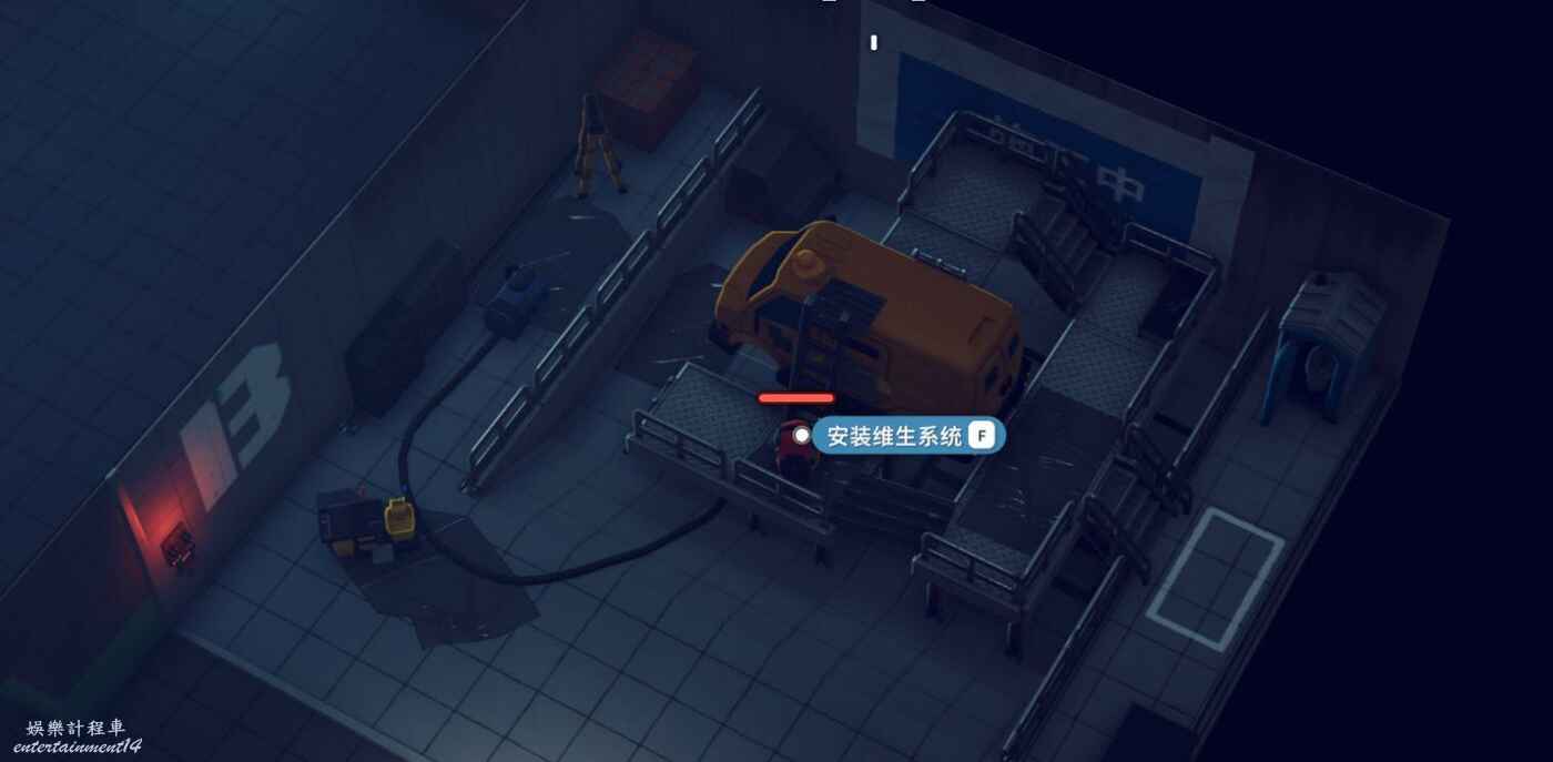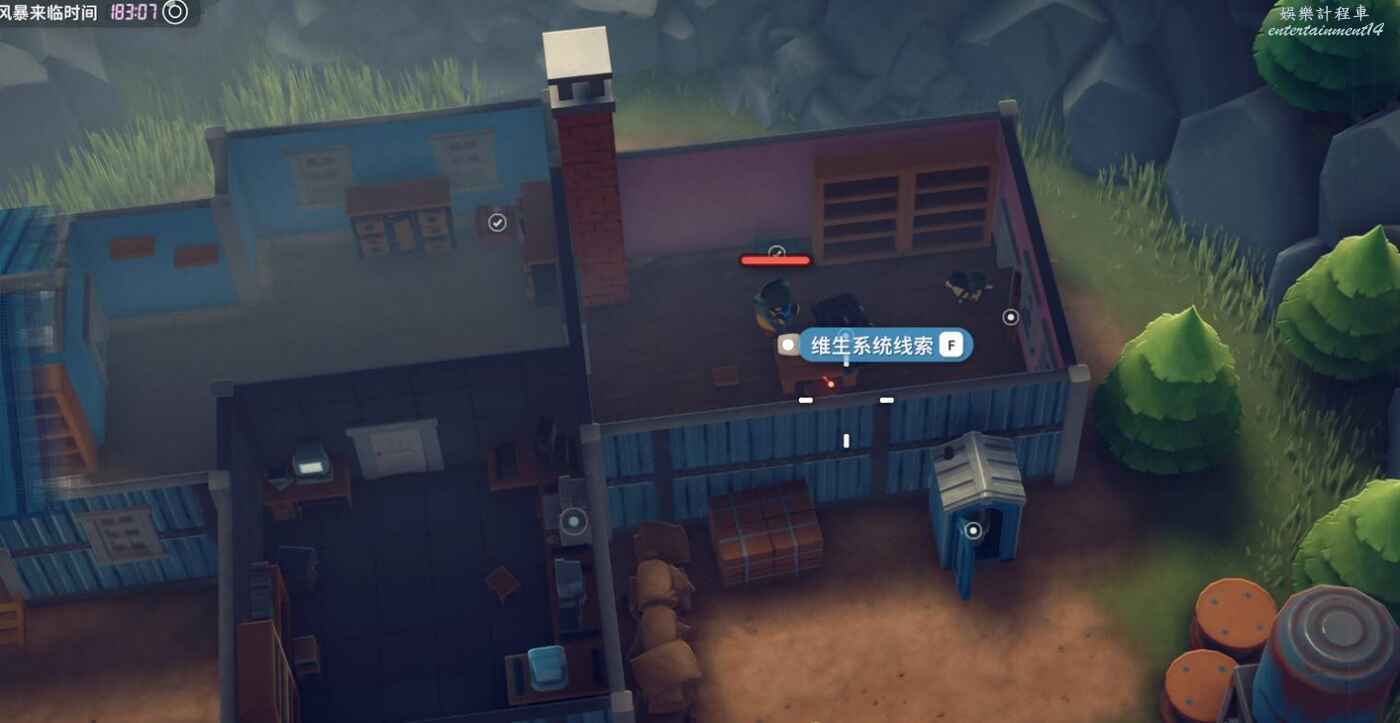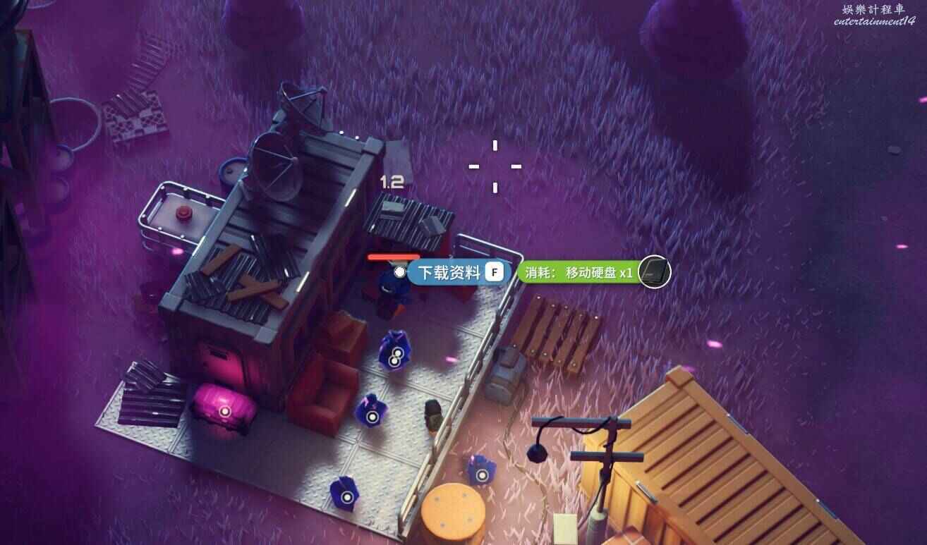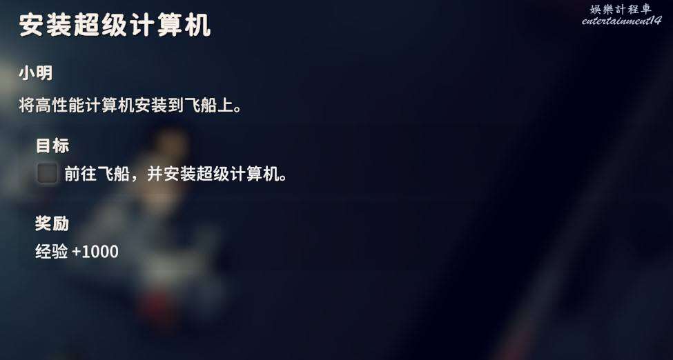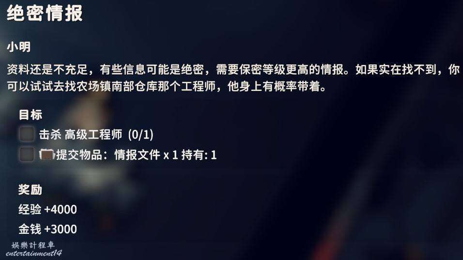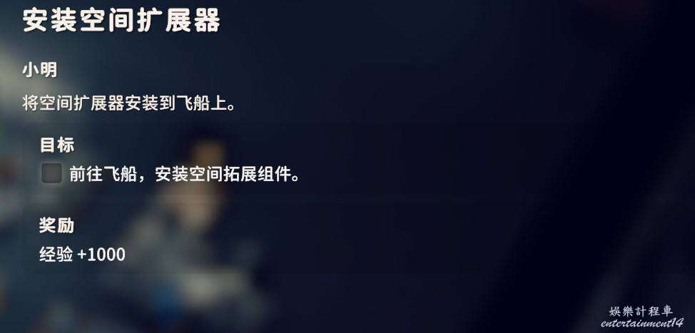 2.是否拾取下圖角色所在位置的資料物品(需要移動硬碟),並完成神秘的圖紙、拓展飛船空間、安裝空間拓展器三個任務(隱藏任務,需要拾取神秘圖紙後回到地堡小明哪裡才會出現感嘆號接任務)。