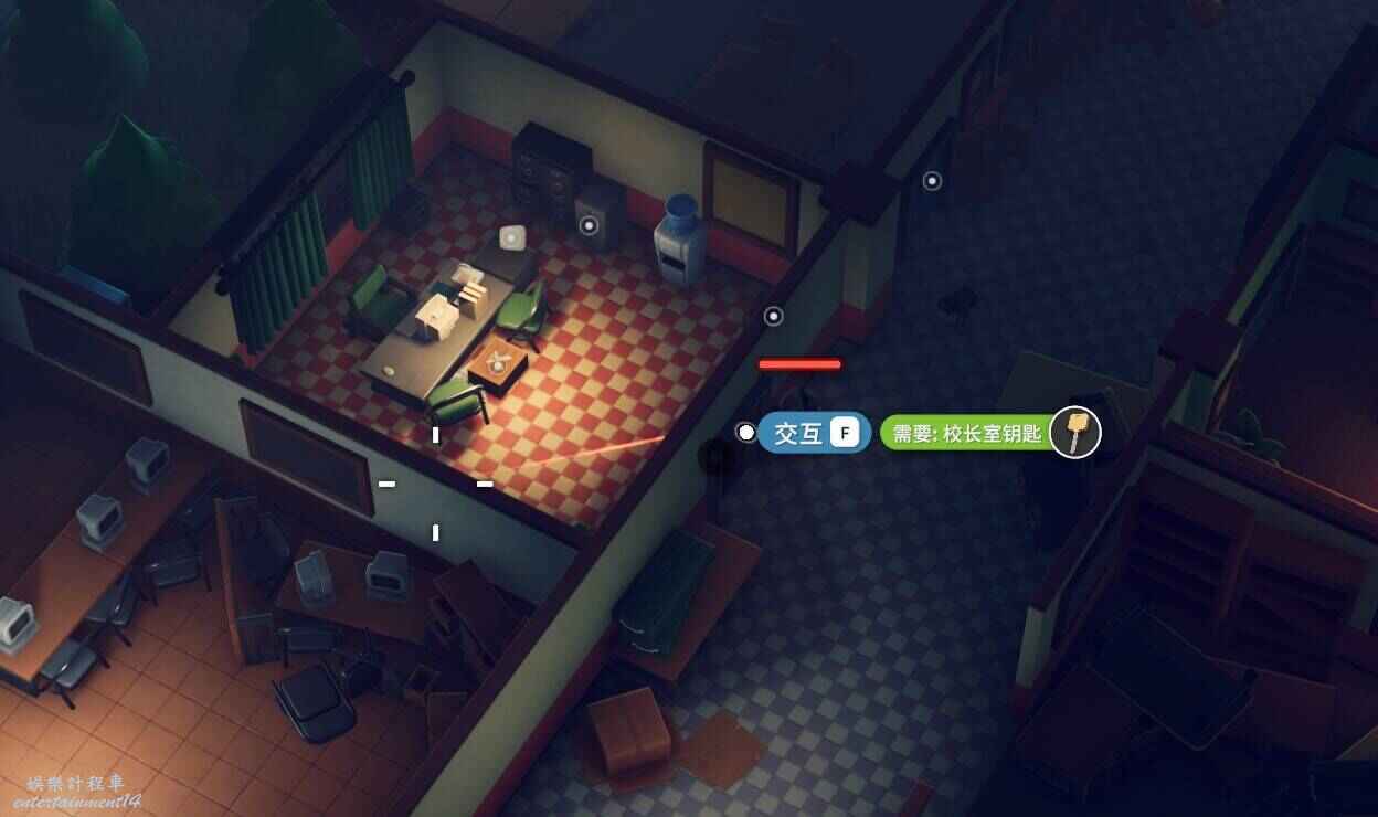 任務要求前往校長辦公室,但是校長辦公室需要鑰匙才能開鎖,所以我們首先來到這個位置找校長辦公室的鑰匙: