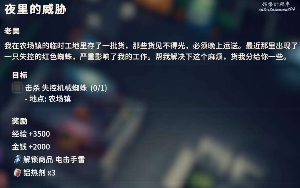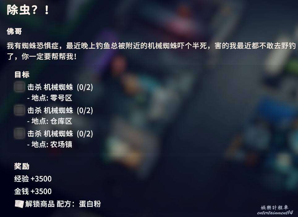 前往農場鎮下圖位置,擊殺失控的機械蜘蛛(普通蜘蛛不算,必須是任務目標)即可完成任務。