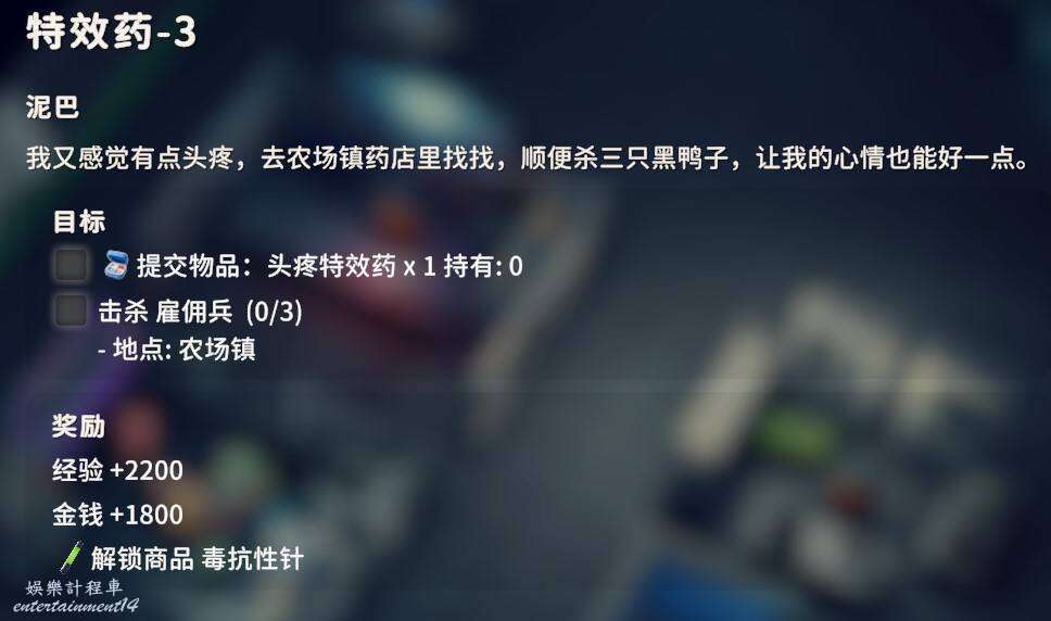 前往農場鎮的藥店拿走頭疼特效藥即可完成任務。